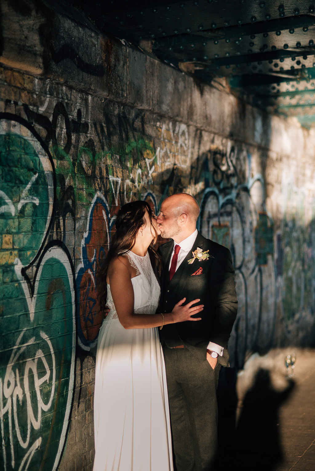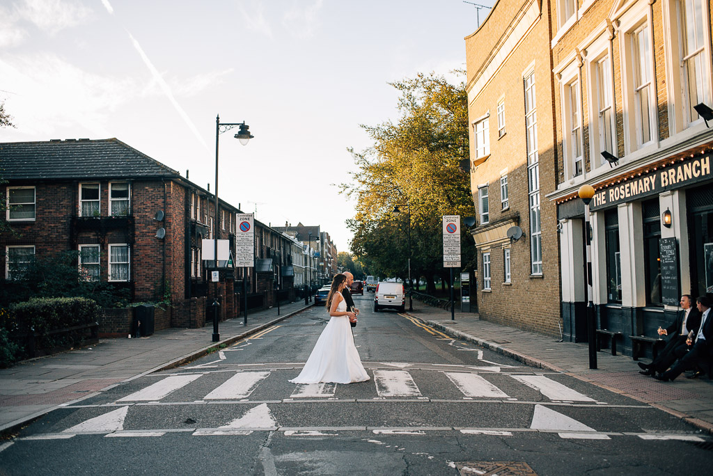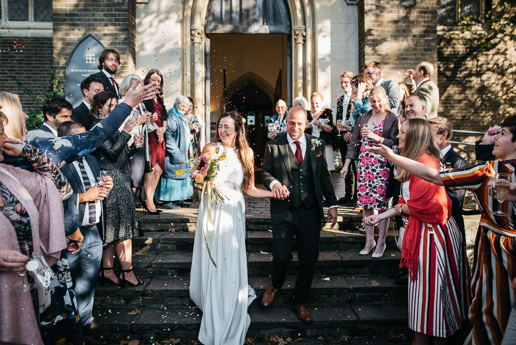 Dress: Rembo Styling @rembostyling from Angelica Bridal @angelicabridal // Rings: Phoebe Coleman @phoebecoleman // Nail art: DryBy @drybylondon // Suit: TM Lewin @tmlewin // Flowers: The Flower Appreciation Society @flowersociety // Shoes: Nike @nike // Cake: Sara Lawrence @debeauvoirbakes // Makeup/Hair: Justina Sullivan at Beautiful Brides // On the day decorating: Chenai @bychenai // Venues: St Peter De Beauvoir @stpeterdebeauvoir and The Rosemary Branch @rosiebtheatre