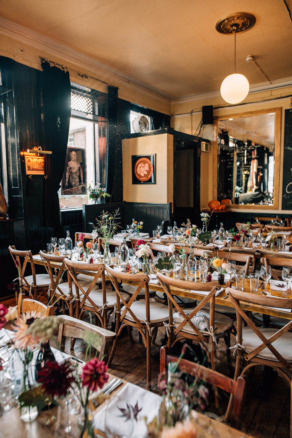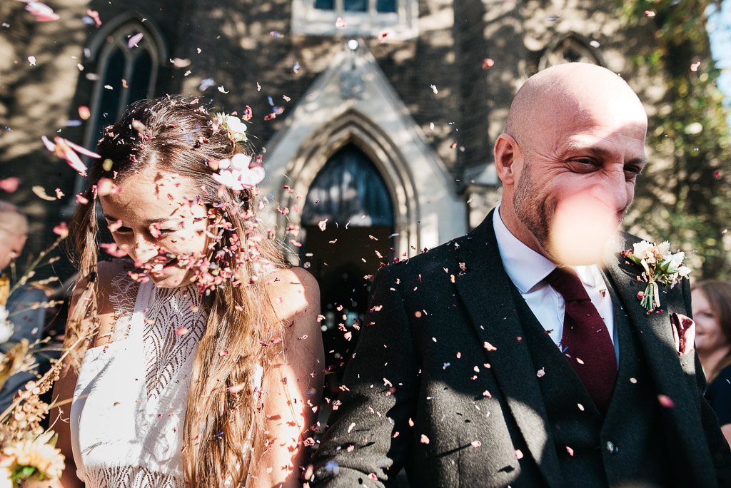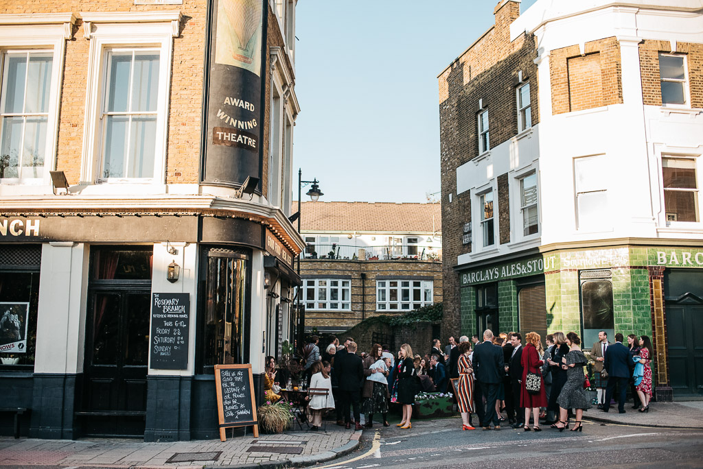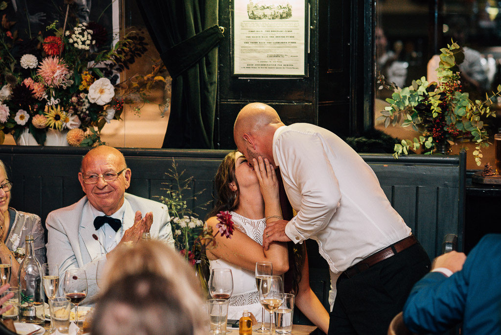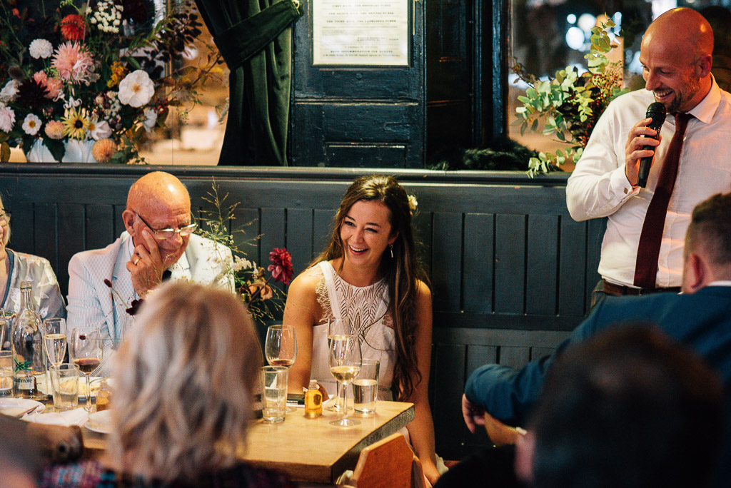 Penny and Jon’s October wedding complete with the autumnal flowers and pumpkins! Pub reception at The Rosemary Branch, Islington.