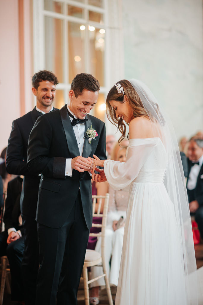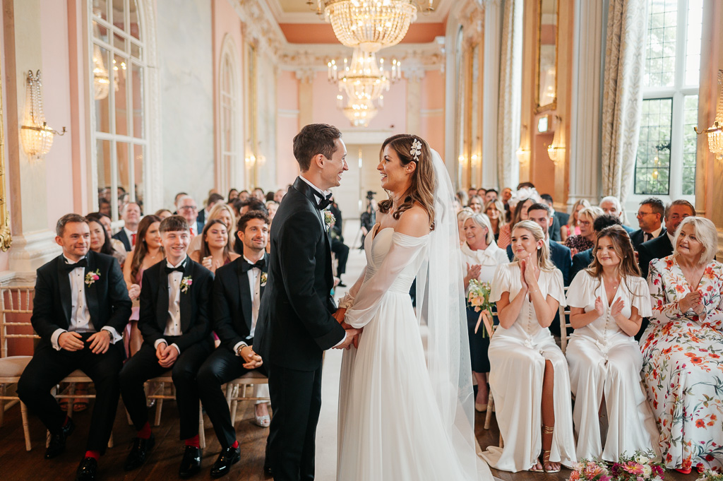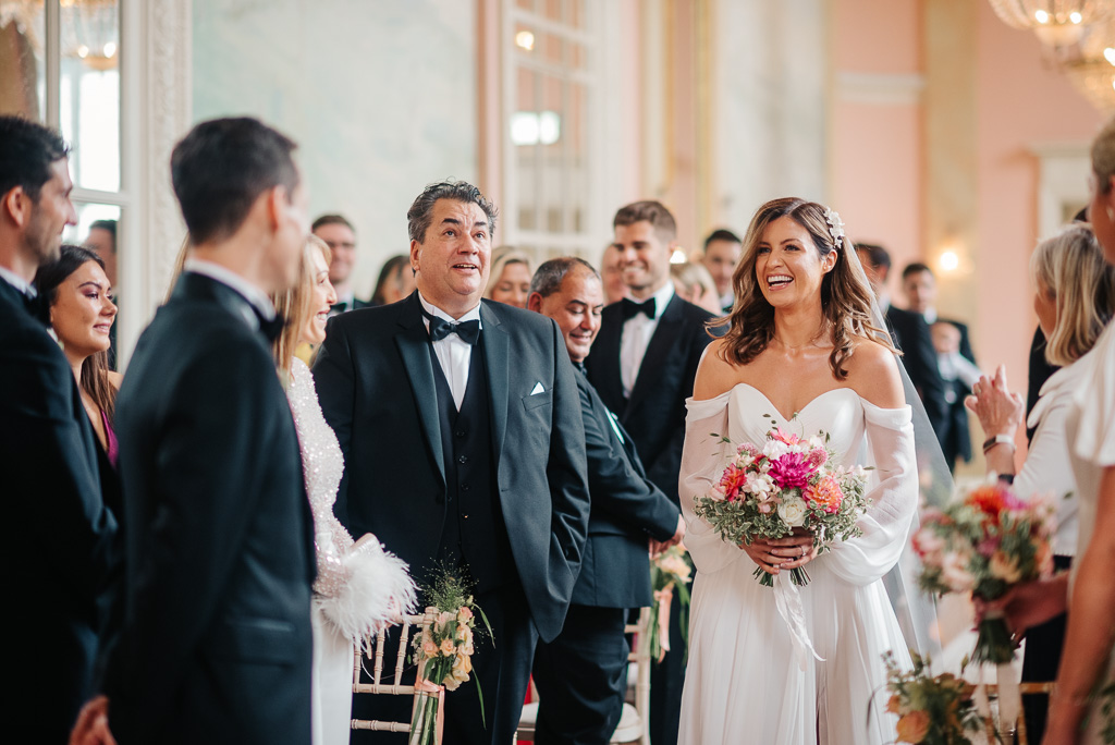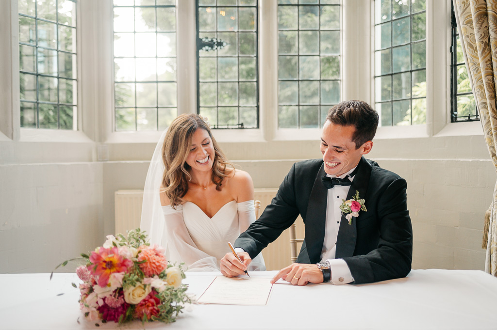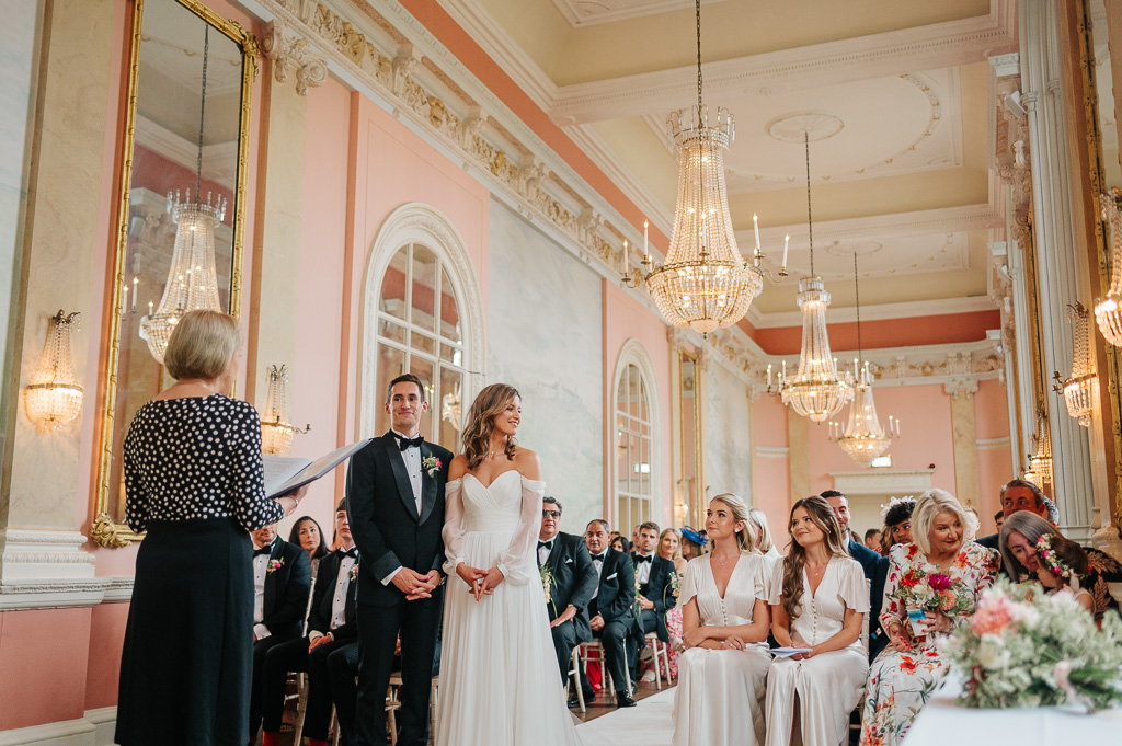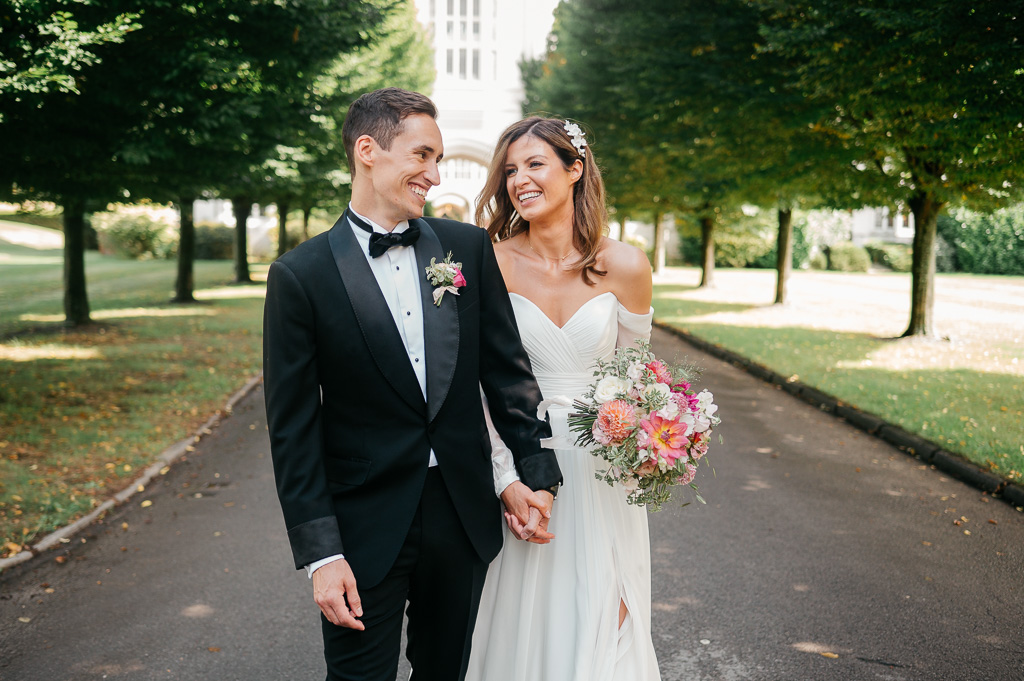 A private estate, a home to 80 boys evacuated during the war, an RAF intelligence base, a business headquarters in 70’s… Country house hotel, Danesfield House has a long and varied history. It now serves as a charming and characterful hotel, spa & wedding venue. Despite its grandeur; a ceremony room straight from Versailles, a clock tower, and beautifully manicured gardens with stunning views over the Chiltern Hills and River Thames, the venue is unpretentious. It was the perfect spot for Georgia & James’ elegant English wedding.