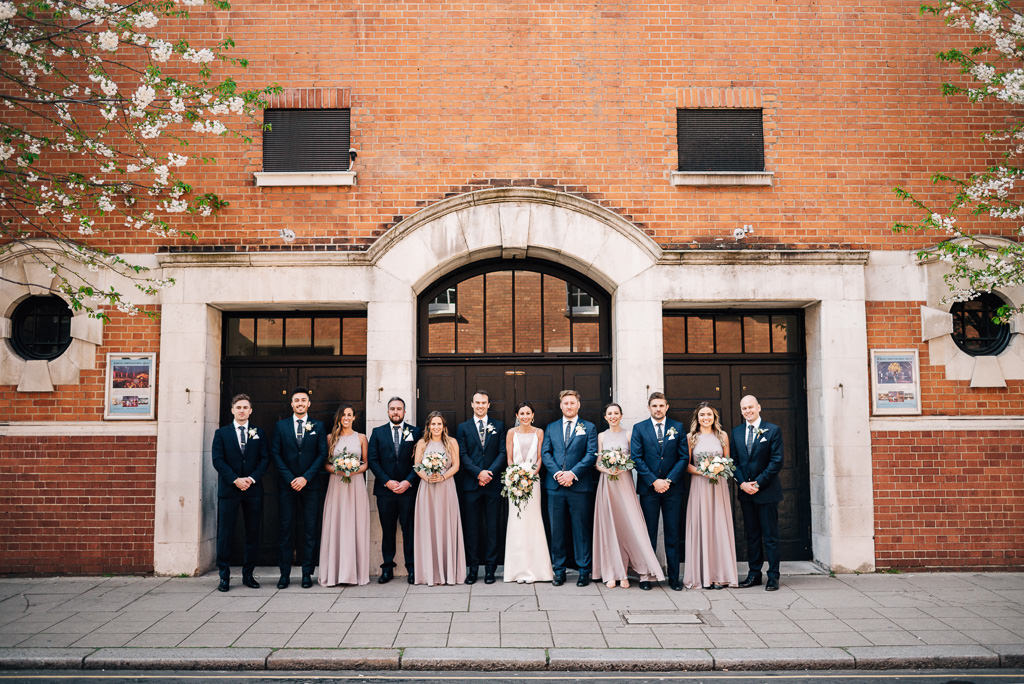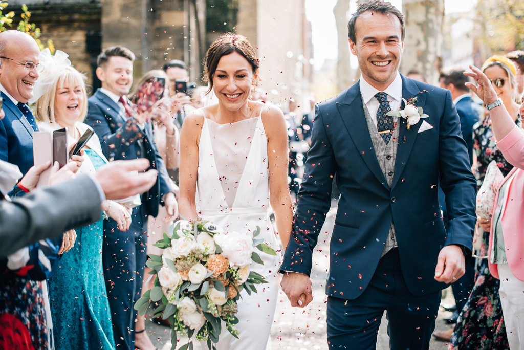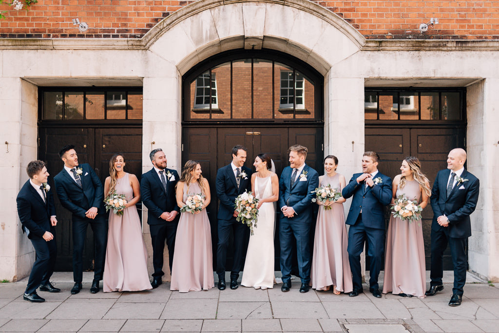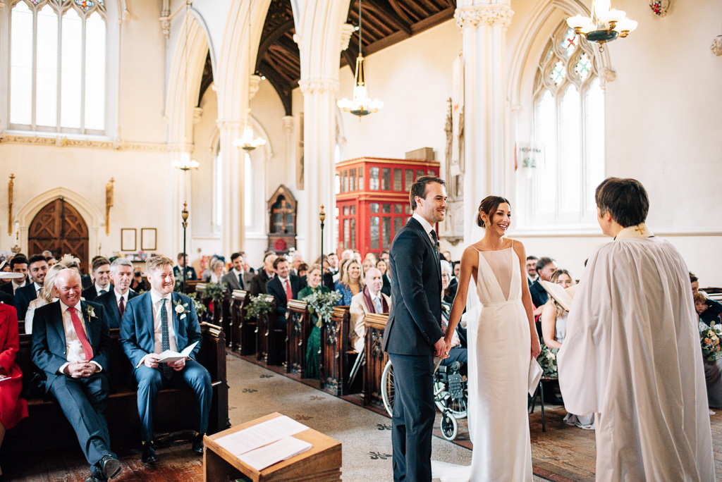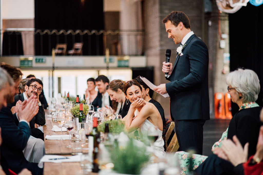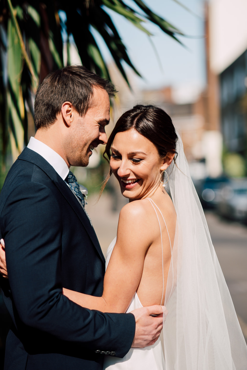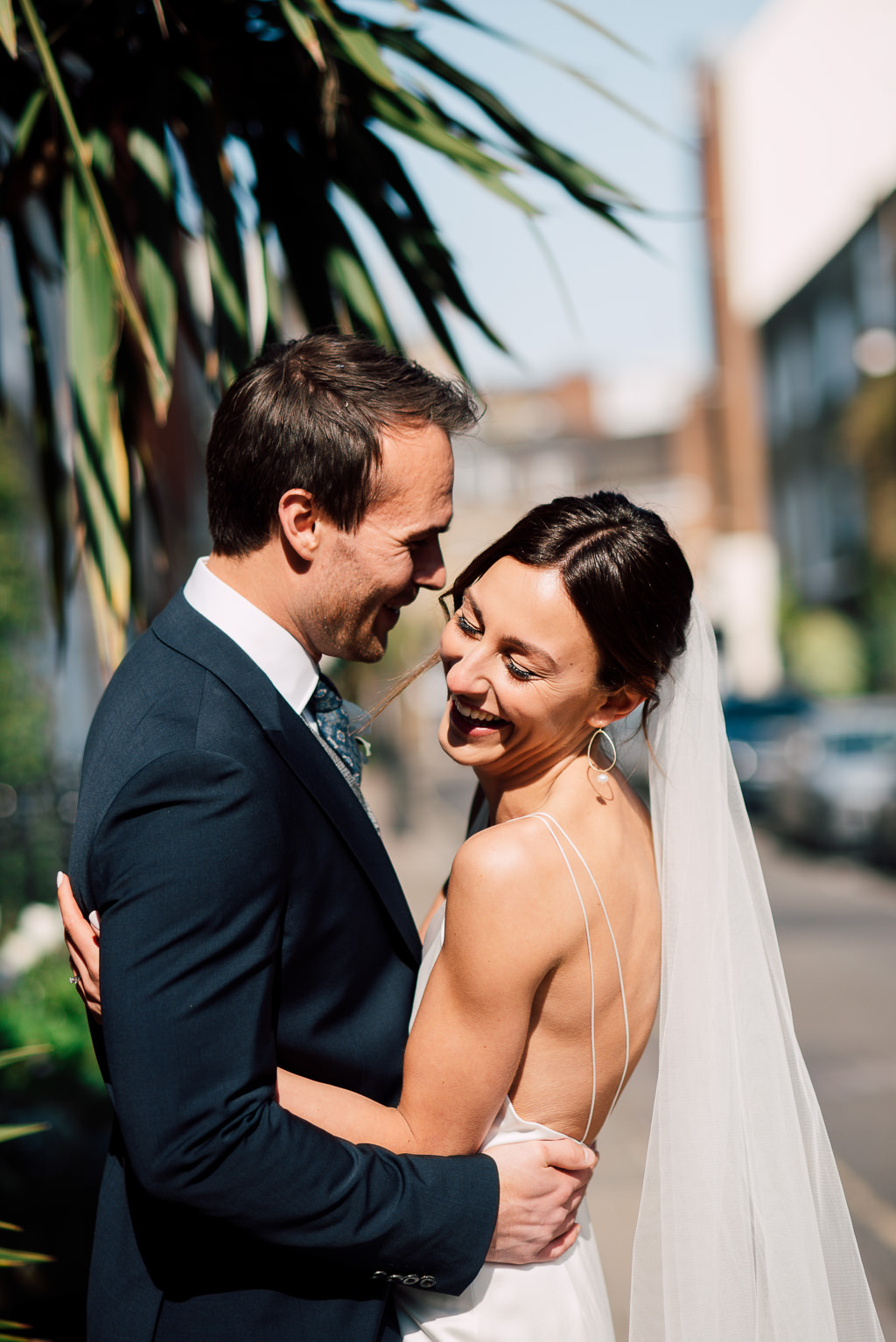 Harriet and Tom’s London Springtime wedding. Their reception venue was a school sports hall beautifully transformed by @chrisadnittevents, The Wedding Arrangers. Harriet wore the incredible ‘Ines’ dress from @andrea_hawkes_bridal. Hair by the lovely Kate at @hero.hairstylist.