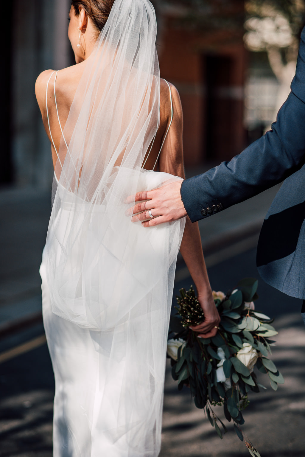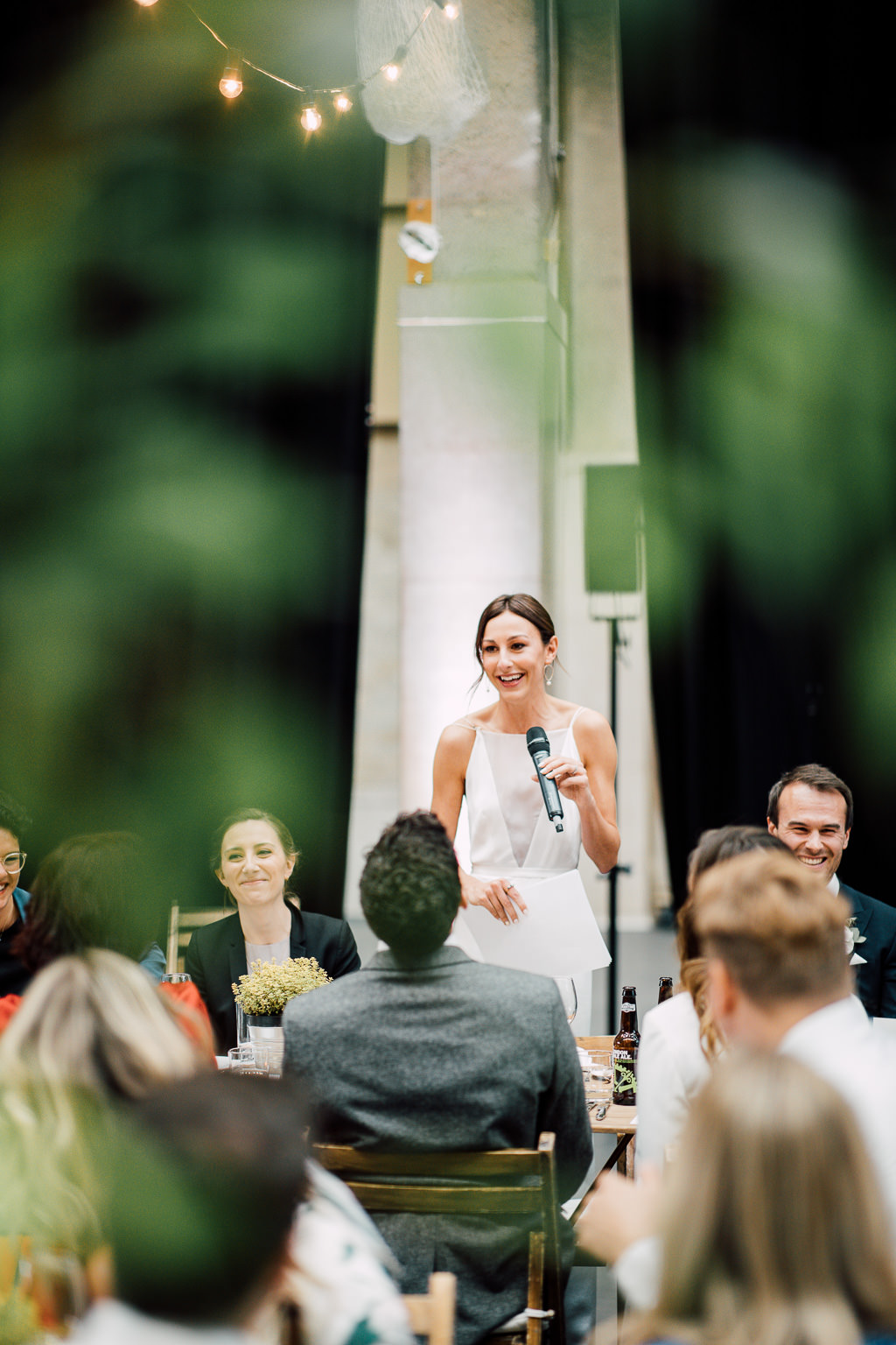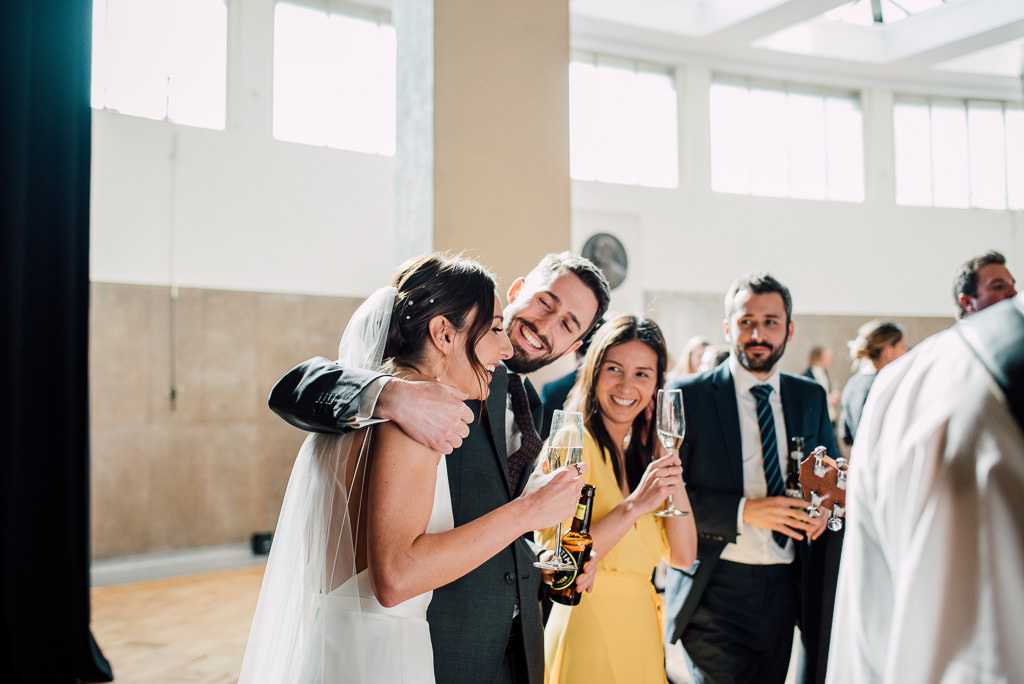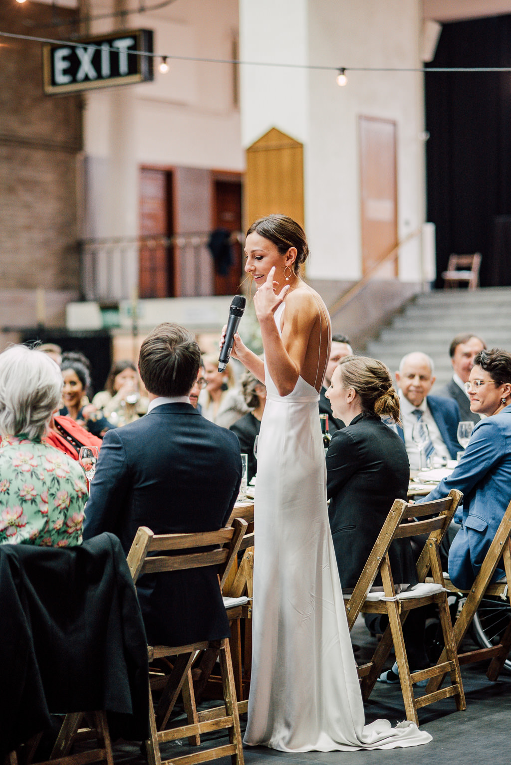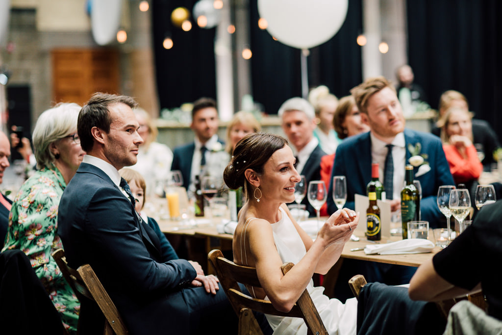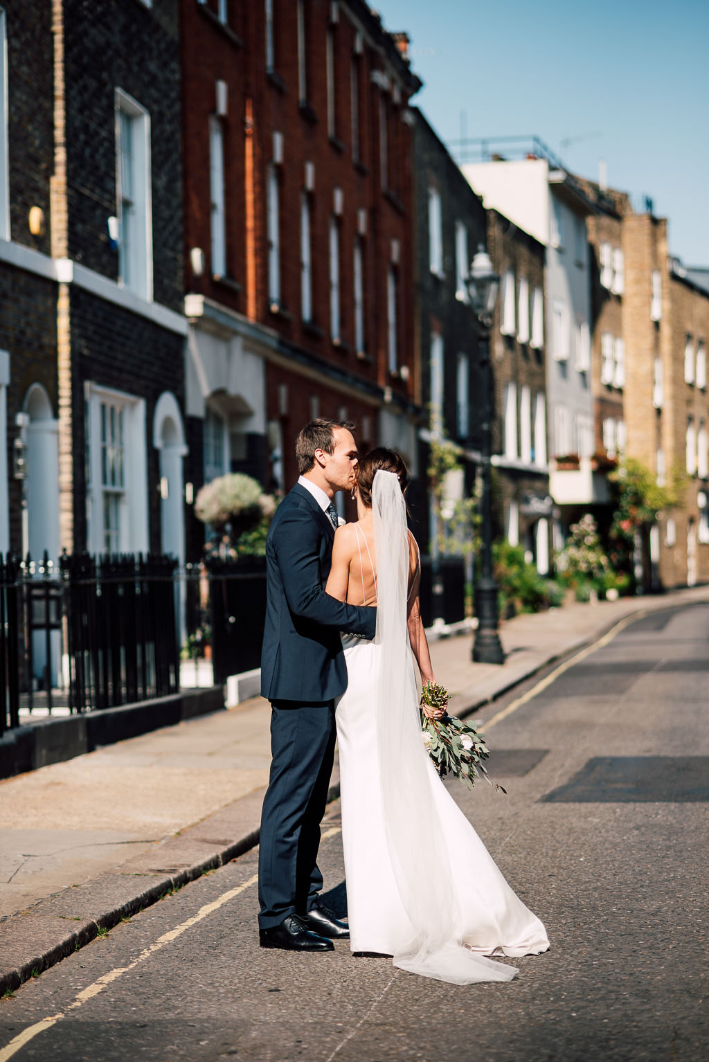 Harriet and Tom’s London Springtime wedding. Their reception venue was a school sports hall beautifully transformed by @chrisadnittevents, The Wedding Arrangers. Harriet wore the incredible ‘Ines’ dress from @andrea_hawkes_bridal. Hair by the lovely Kate at @hero.hairstylist.