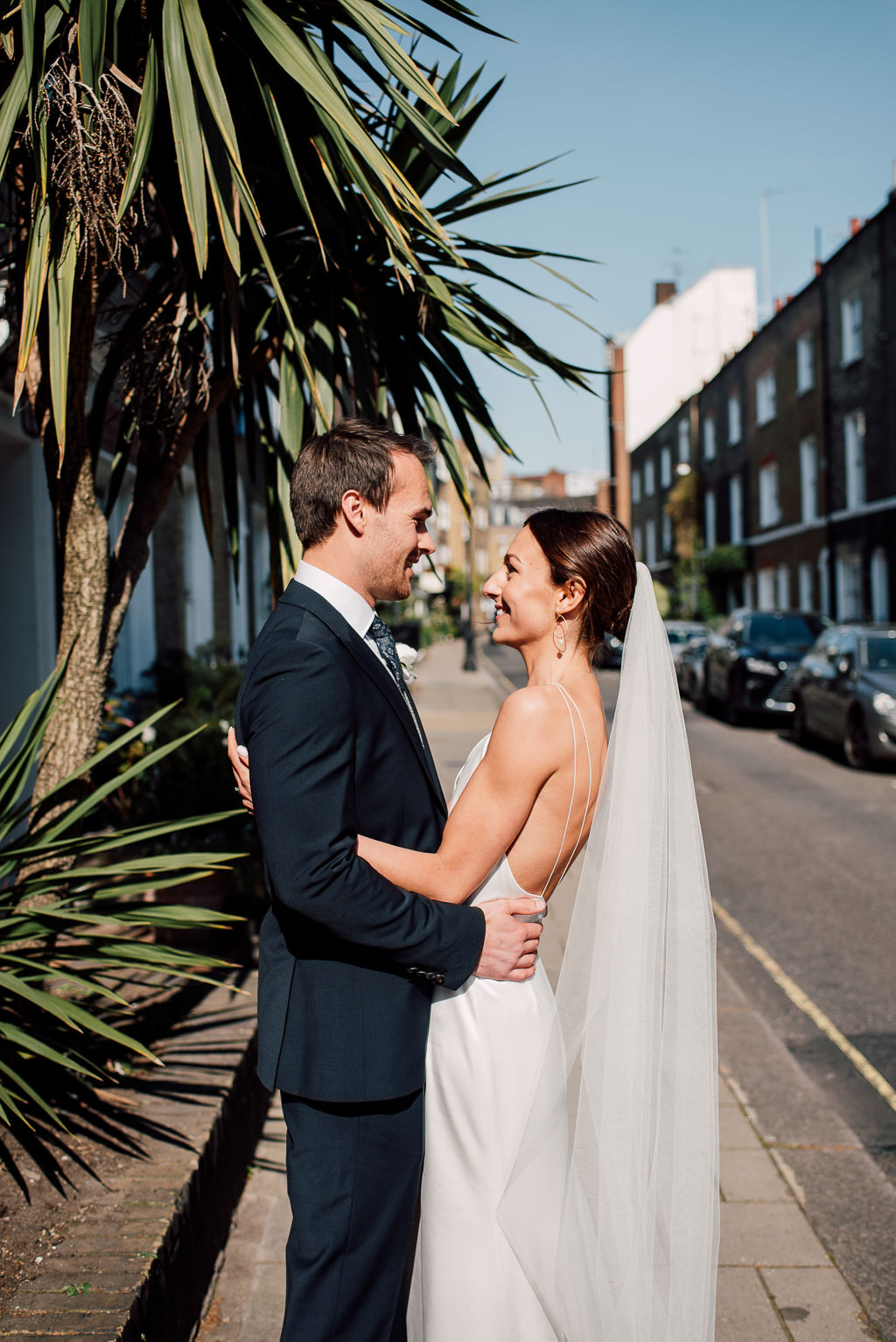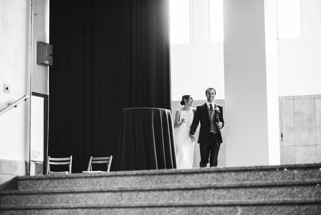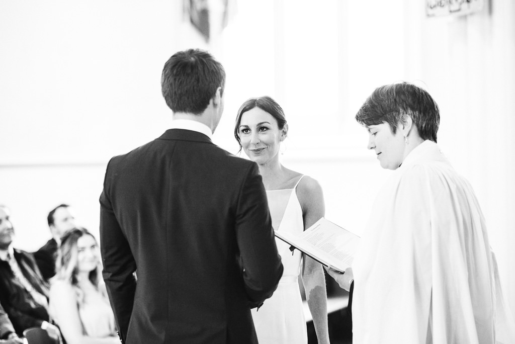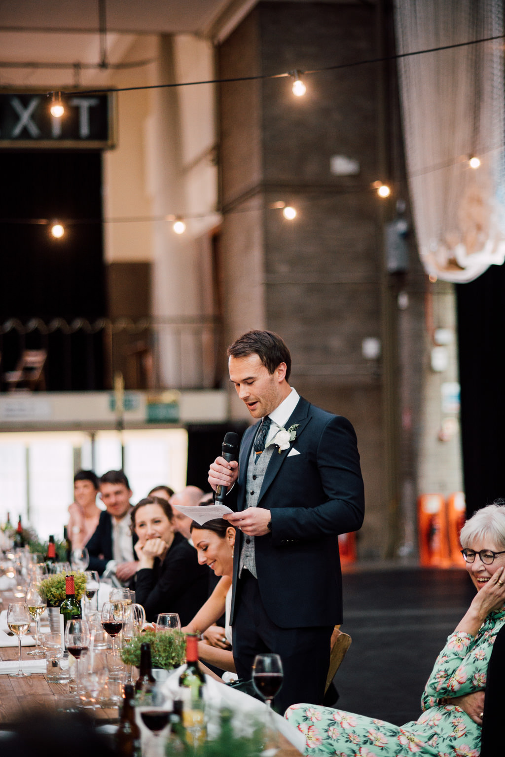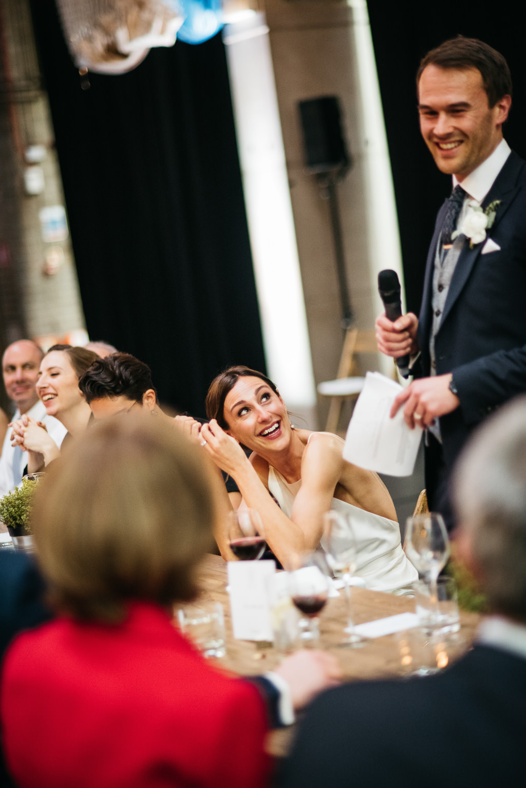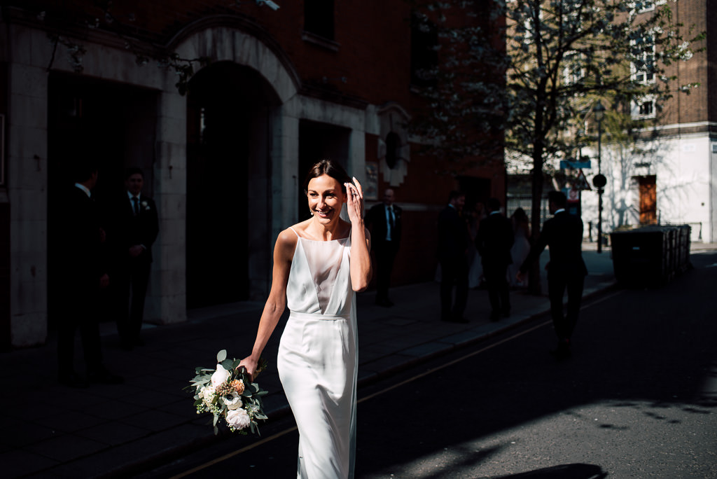 Harriet and Tom’s London Springtime wedding. Their reception venue was a school sports hall beautifully transformed by @chrisadnittevents, The Wedding Arrangers. Harriet wore the incredible ‘Ines’ dress from @andrea_hawkes_bridal. Hair by the lovely Kate at @hero.hairstylist.