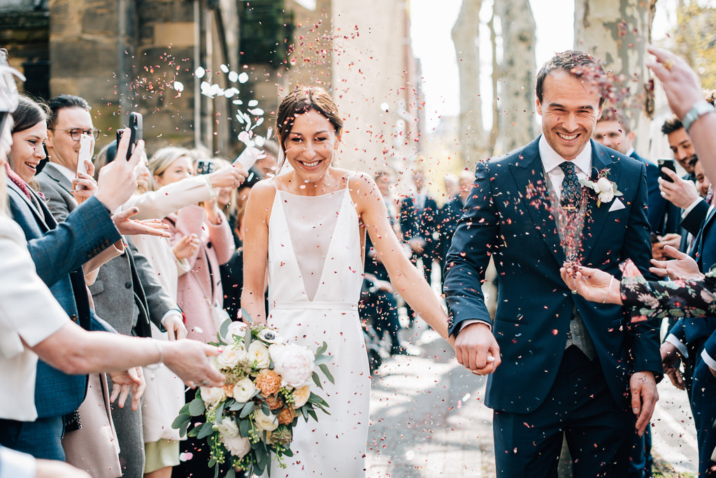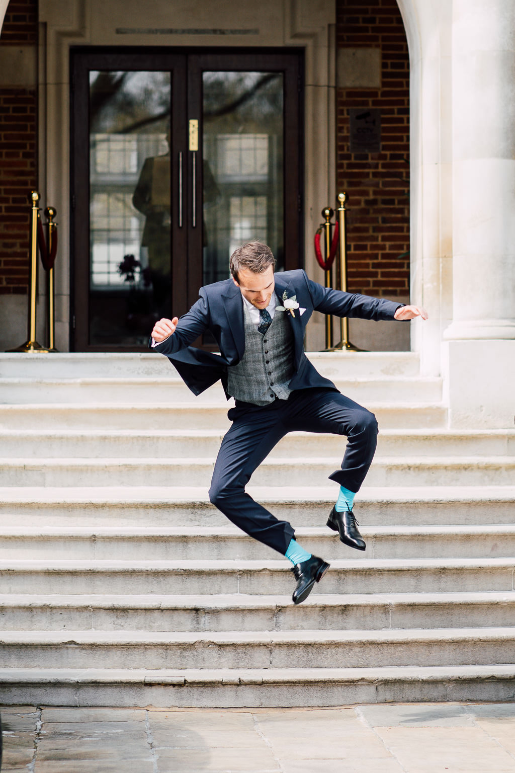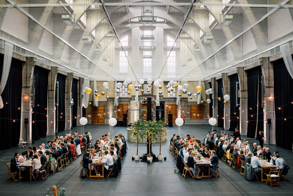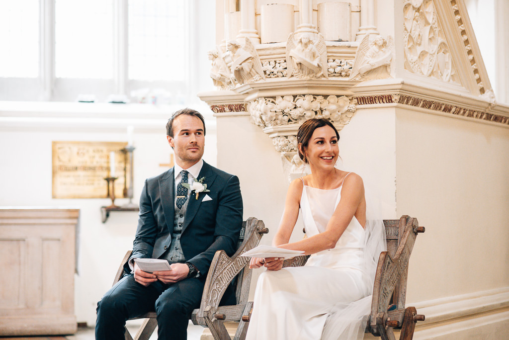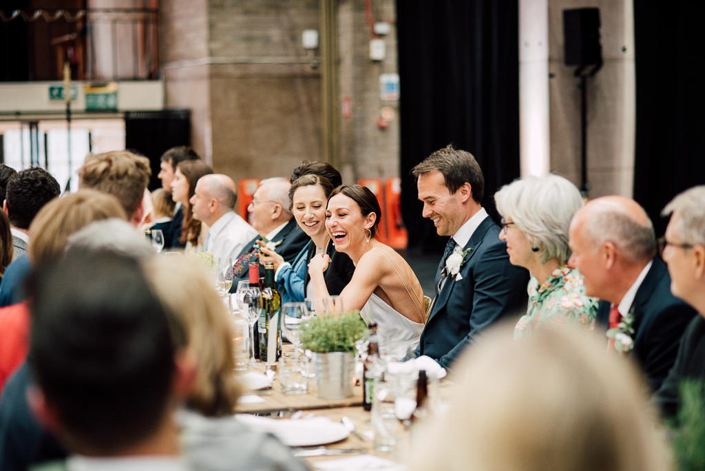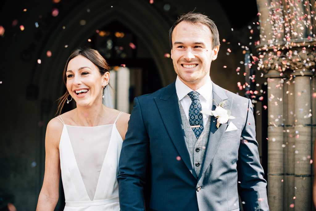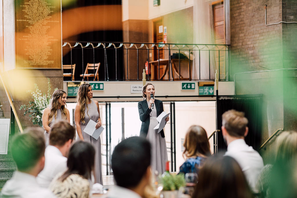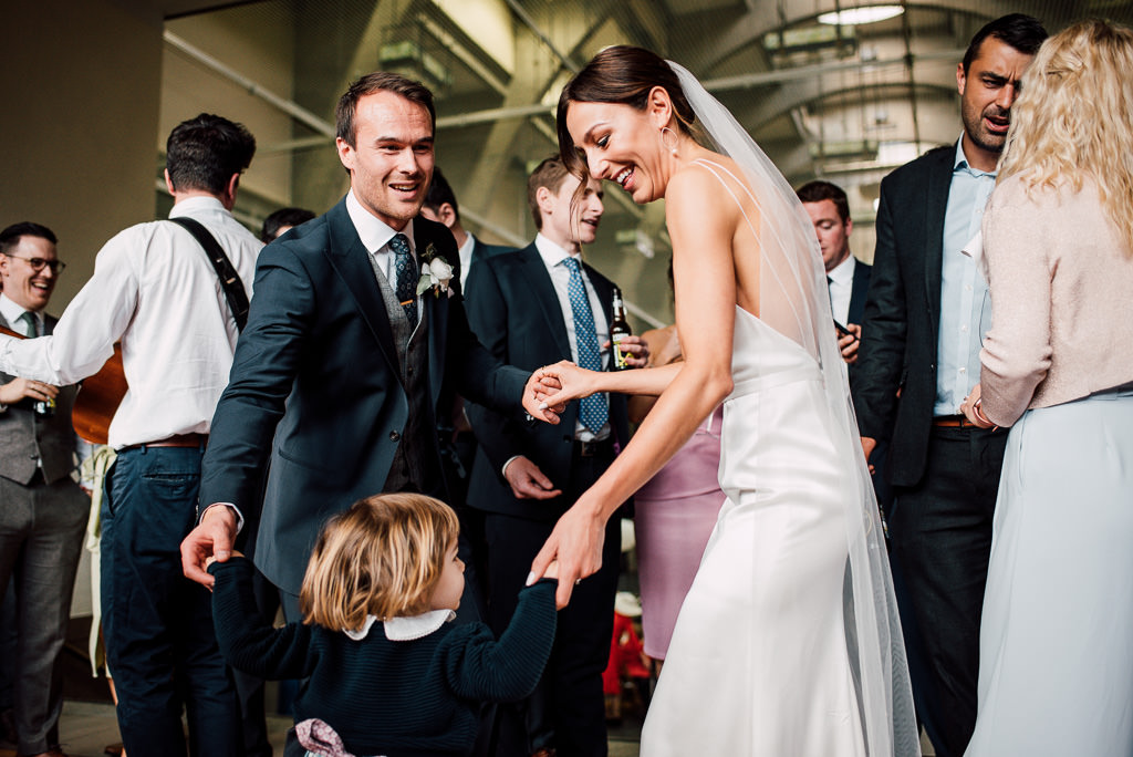 Harriet and Tom’s London Springtime wedding. Their reception venue was a school sports hall beautifully transformed by @chrisadnittevents, The Wedding Arrangers. Harriet wore the incredible ‘Ines’ dress from @andrea_hawkes_bridal. Hair by the lovely Kate at @hero.hairstylist.