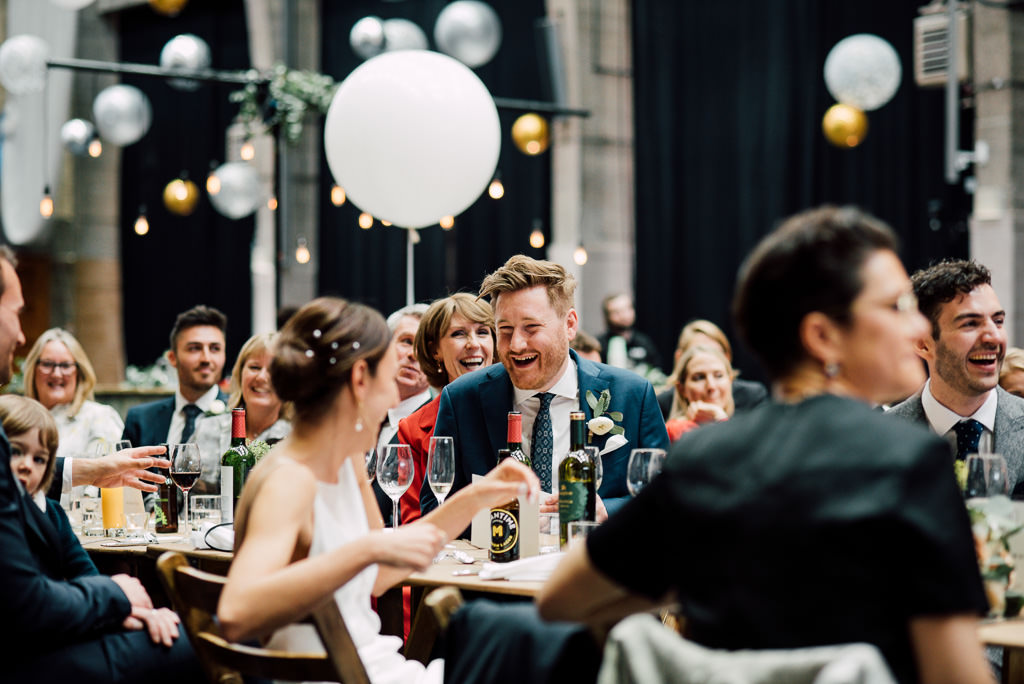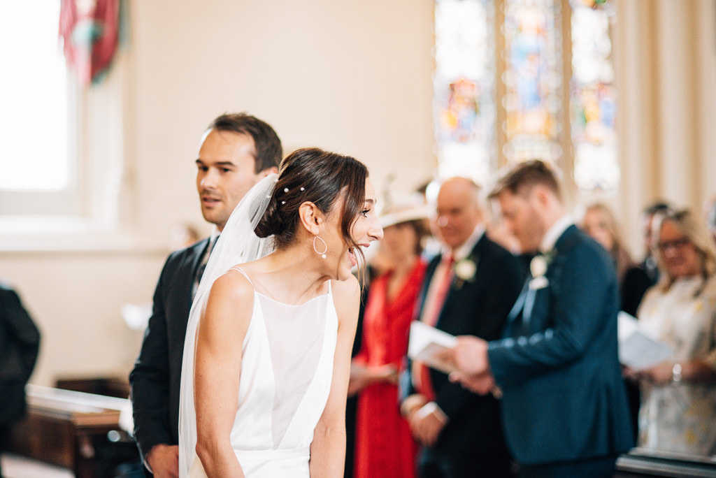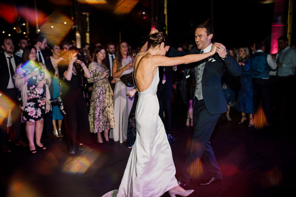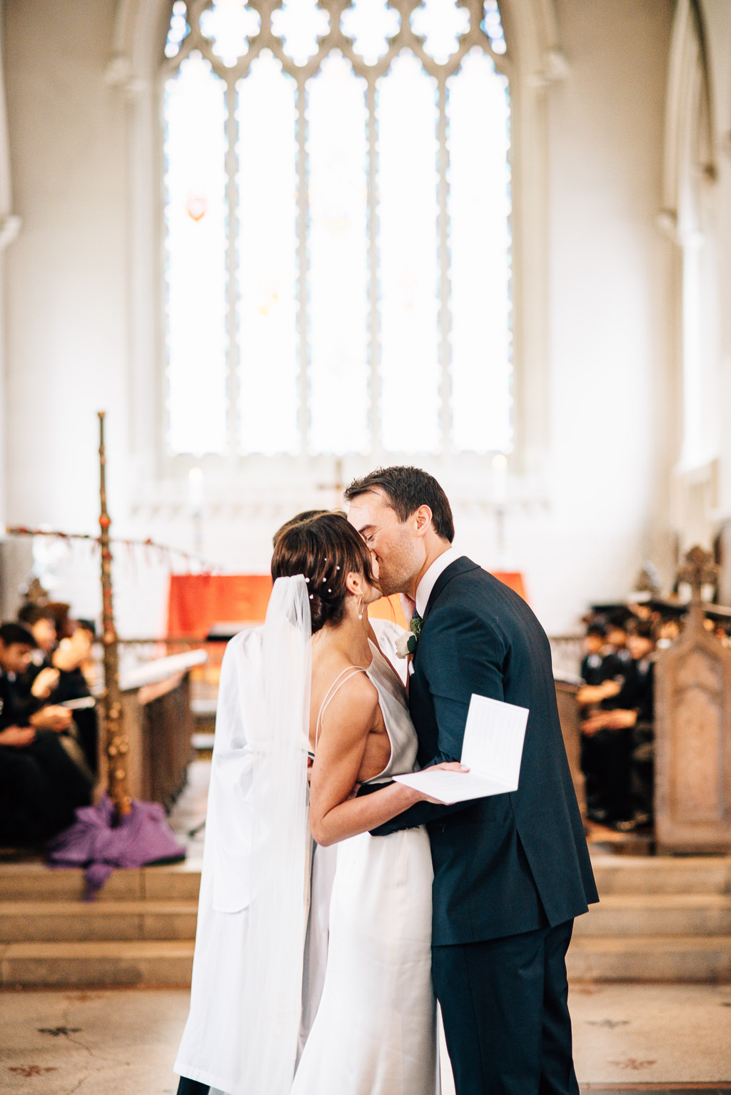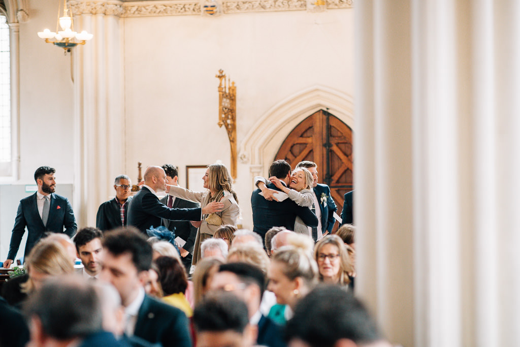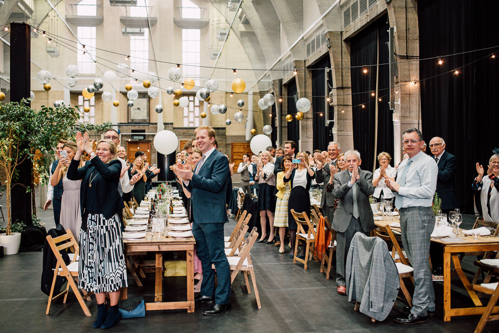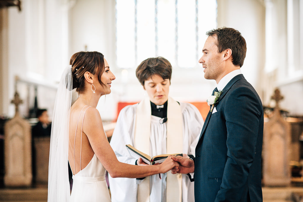 Harriet and Tom’s London Springtime wedding. Their reception venue was a school sports hall beautifully transformed by @chrisadnittevents, The Wedding Arrangers. Harriet wore the incredible ‘Ines’ dress from @andrea_hawkes_bridal. Hair by the lovely Kate at @hero.hairstylist.