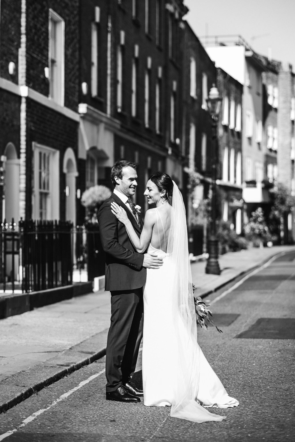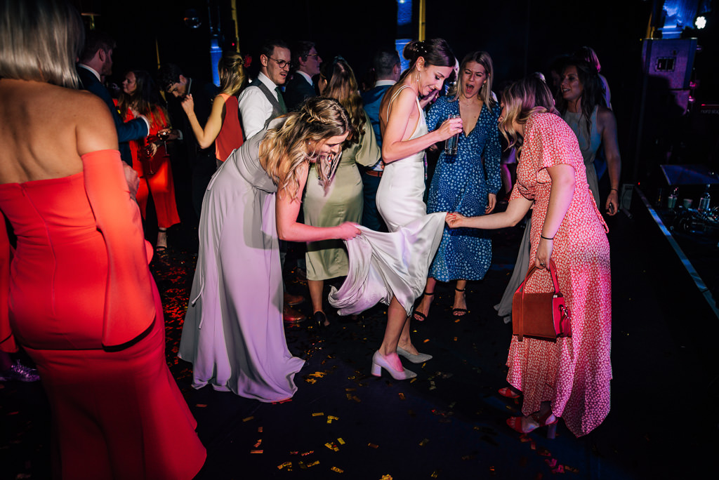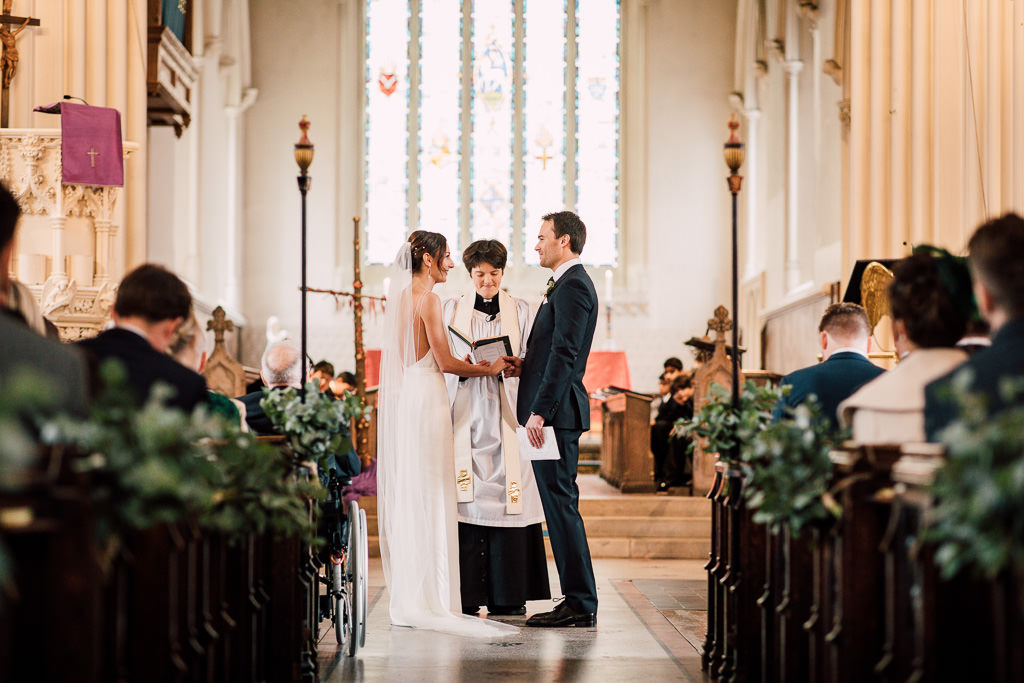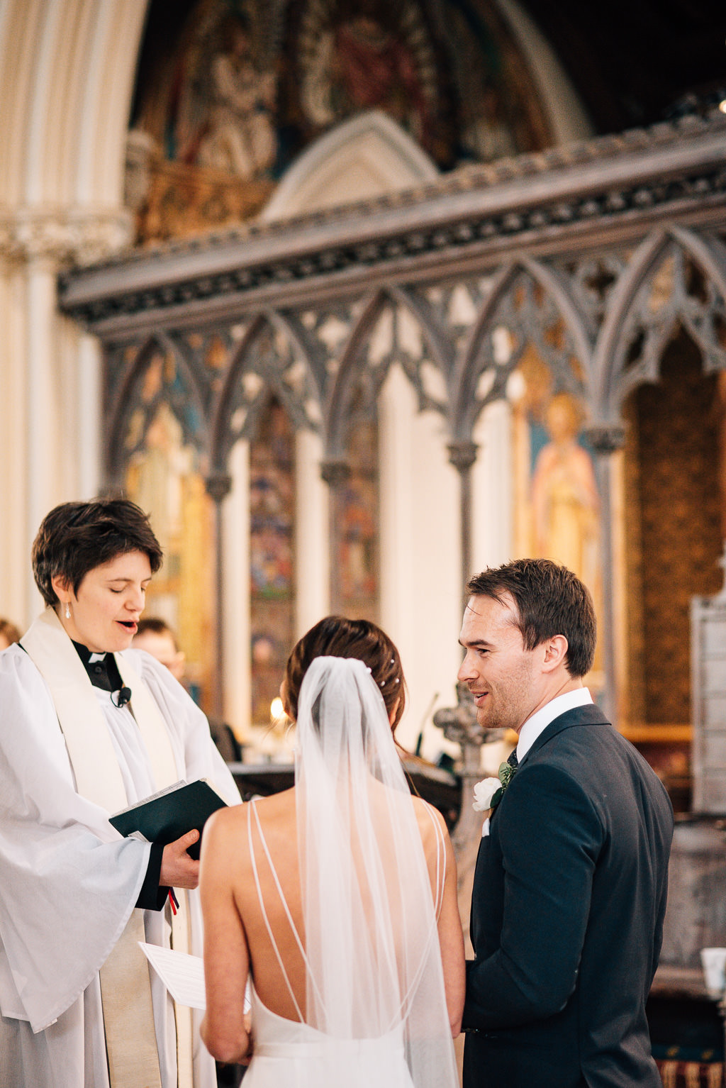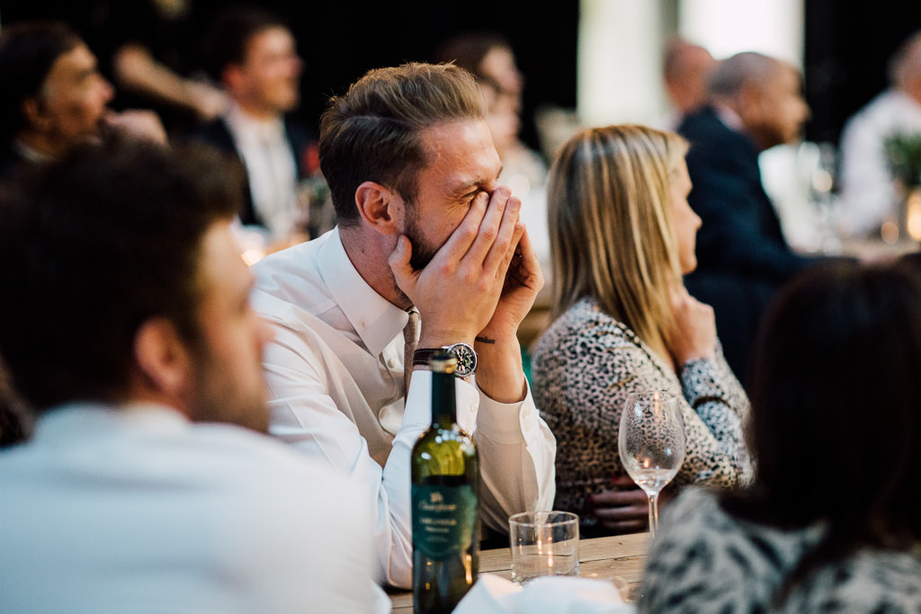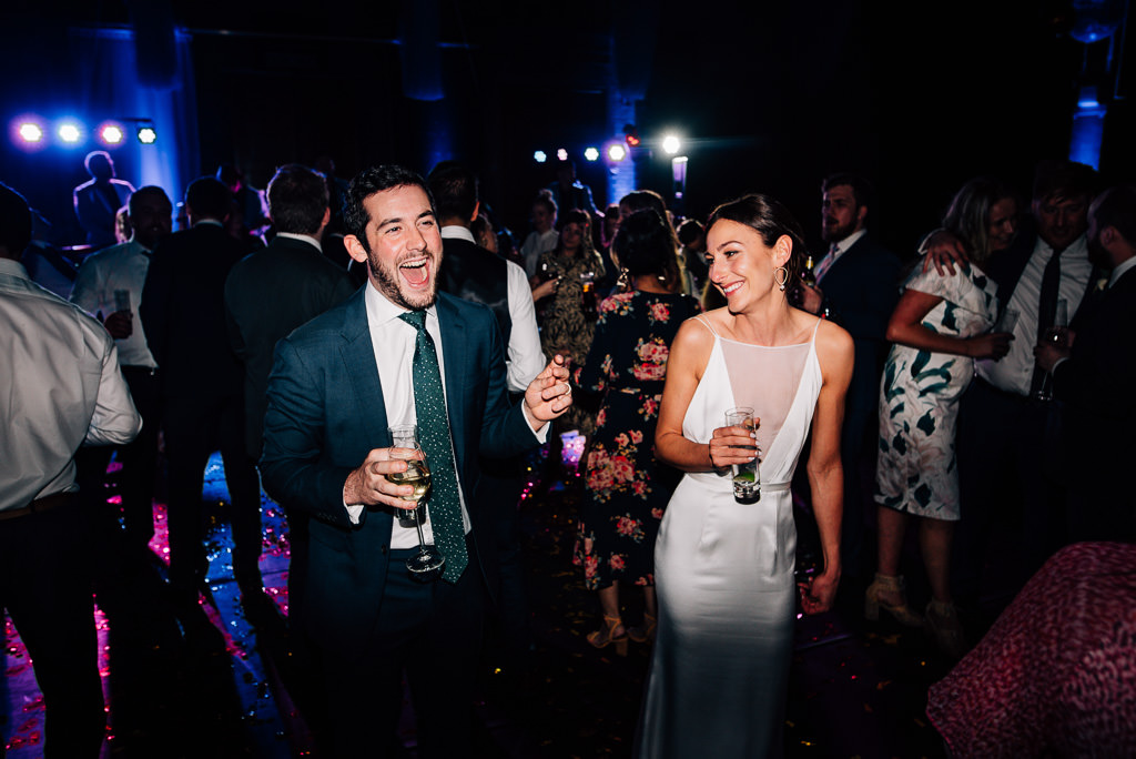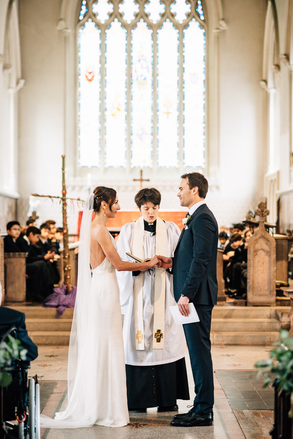 Harriet and Tom’s London Springtime wedding. Their reception venue was a school sports hall beautifully transformed by @chrisadnittevents, The Wedding Arrangers. Harriet wore the incredible ‘Ines’ dress from @andrea_hawkes_bridal. Hair by the lovely Kate at @hero.hairstylist.