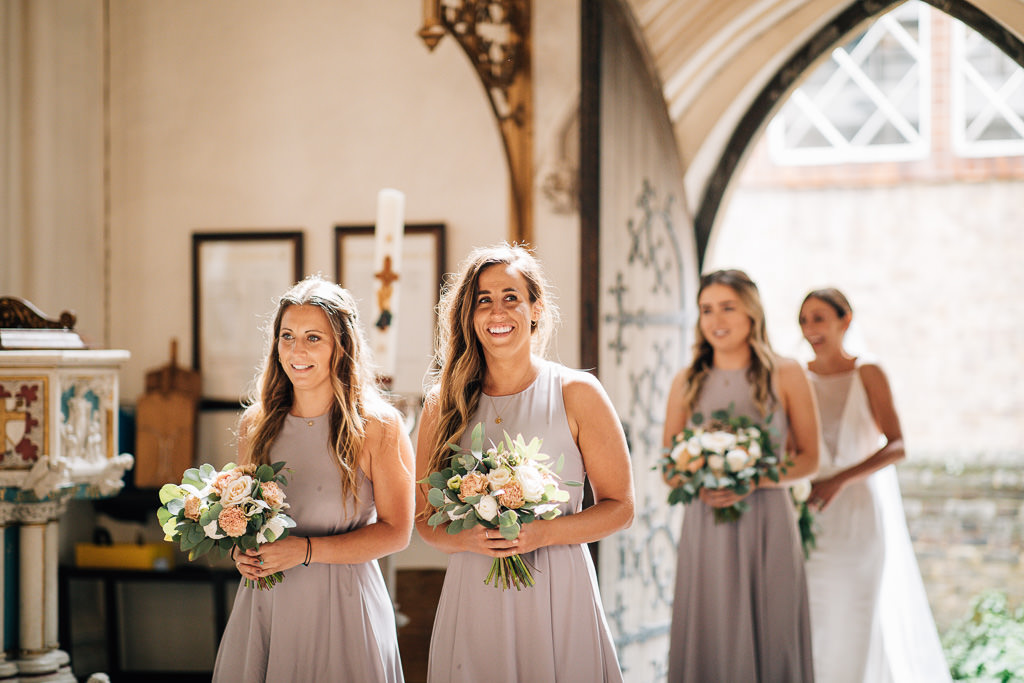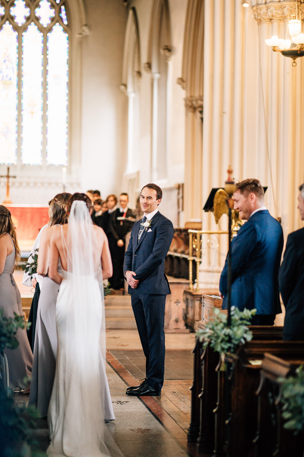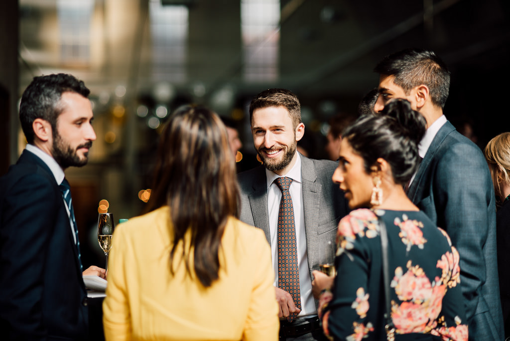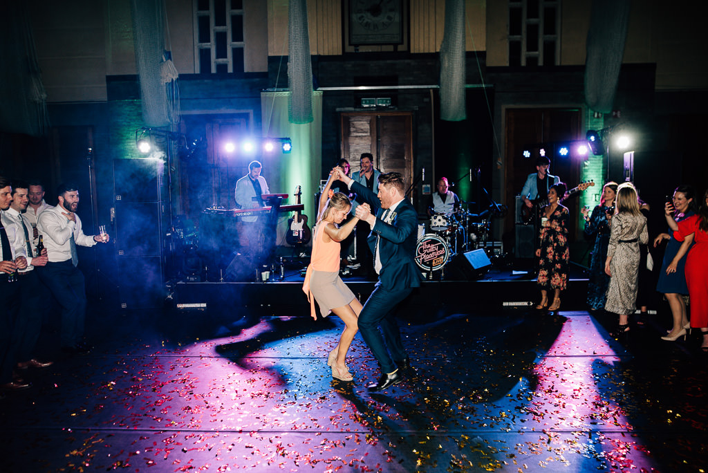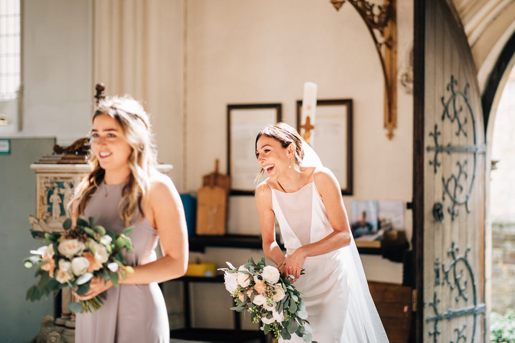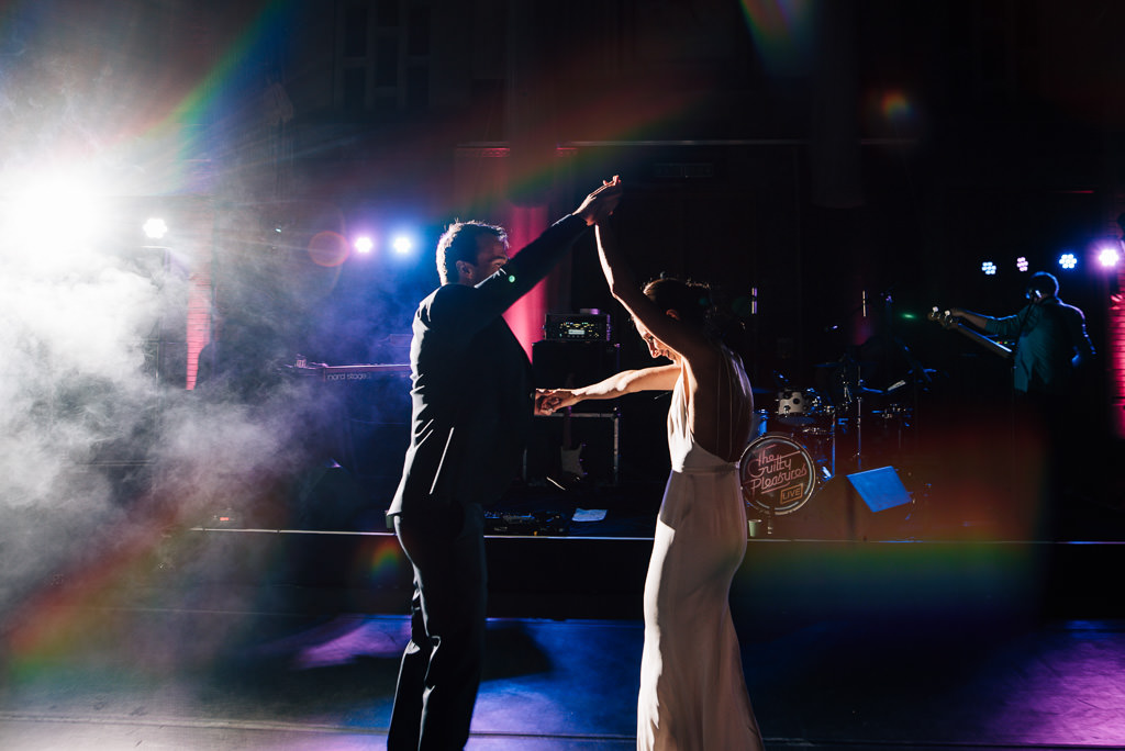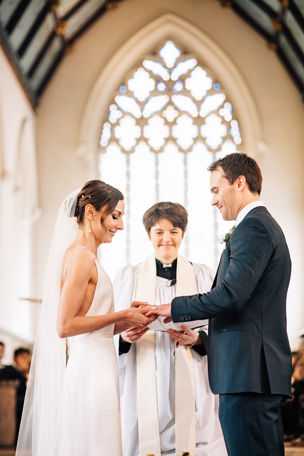 Harriet and Tom’s London Springtime wedding. Their reception venue was a school sports hall beautifully transformed by @chrisadnittevents, The Wedding Arrangers. Harriet wore the incredible ‘Ines’ dress from @andrea_hawkes_bridal. Hair by the lovely Kate at @hero.hairstylist.