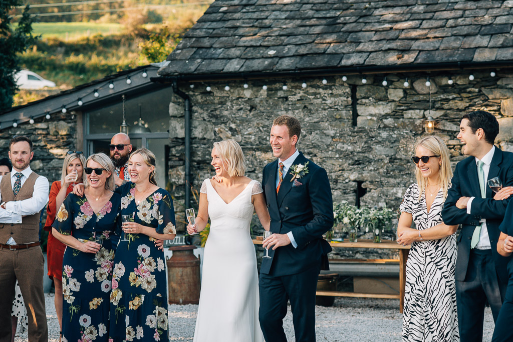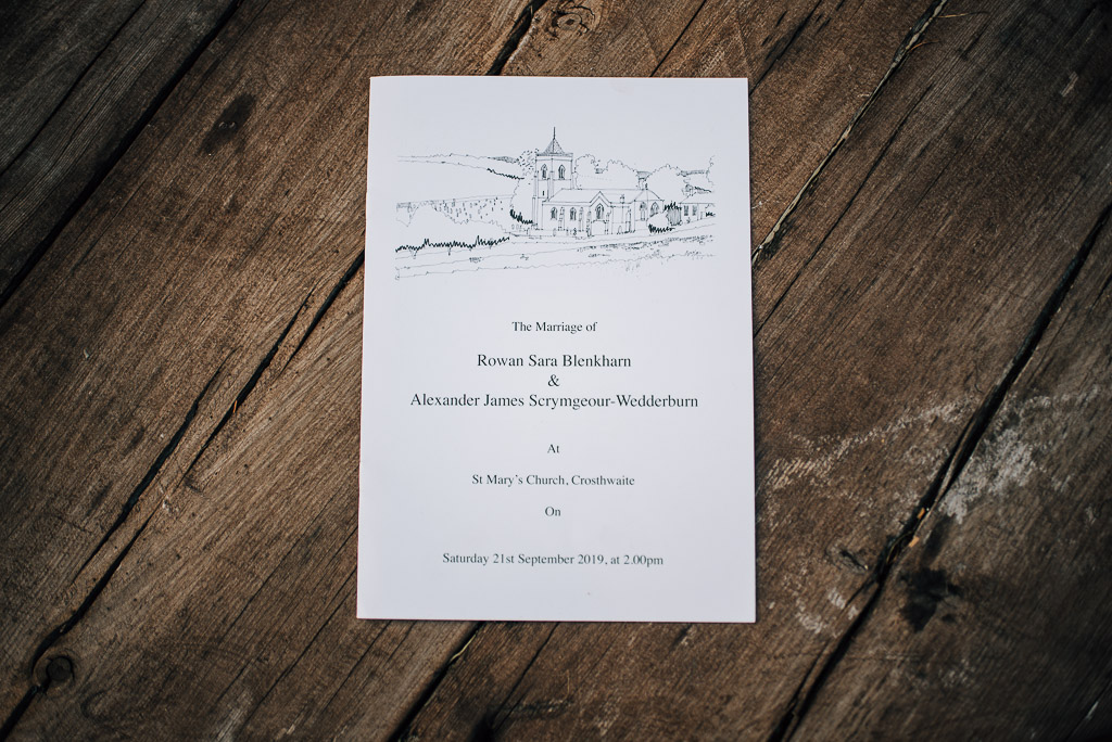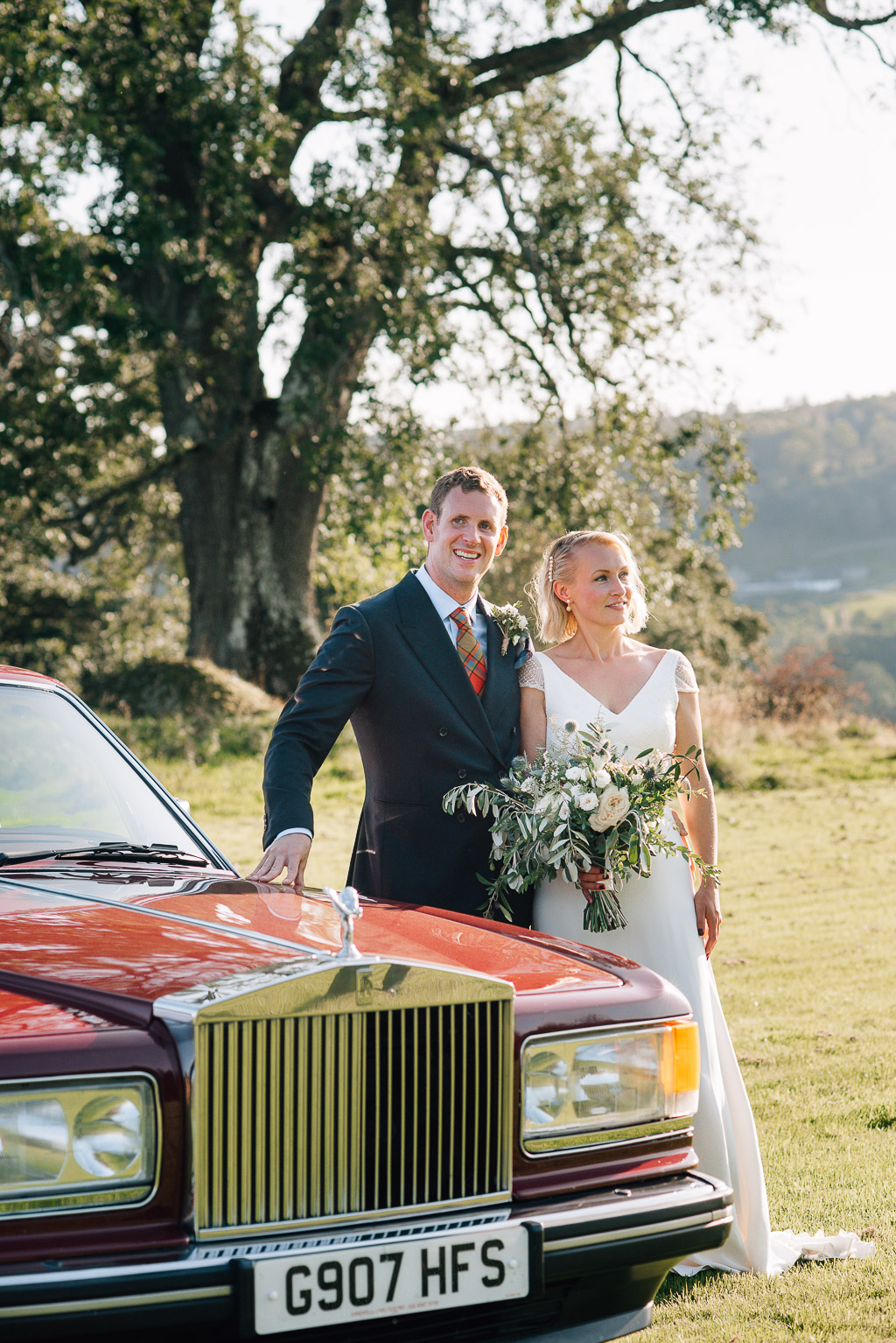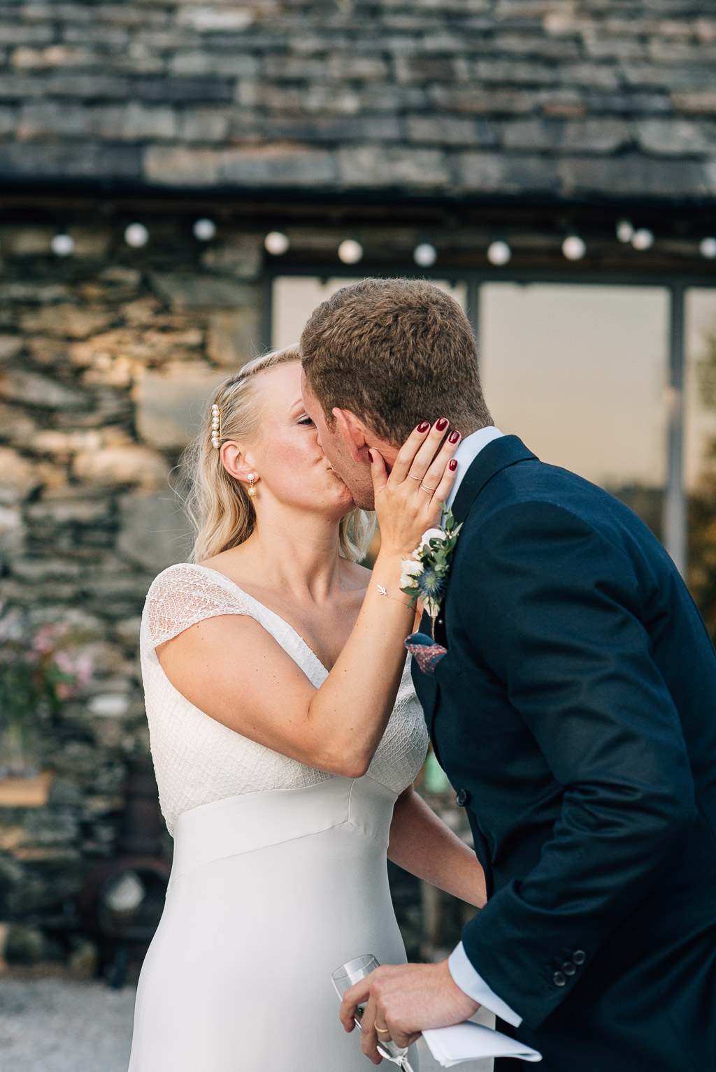Rowan & Alex got married in the beautiful Lake District on a warm late September day. I’ve known Rowan for a couple of years as we used to work together; when she got engaged I quietly hoped she might ask me photograph her wedding and needless to say I was over the moon when she did! Rowan opted for a beautiful dress by Andrea Hawkes, who are known for their gorgeously simplistic, modern styles. Their venue, Paddock barn set amongst incredible views, was rustic and cosy without being at all twee. Alex and his groomsmen wore a family tartan in brightly coloured ties, which looked great against the dark blue suits.