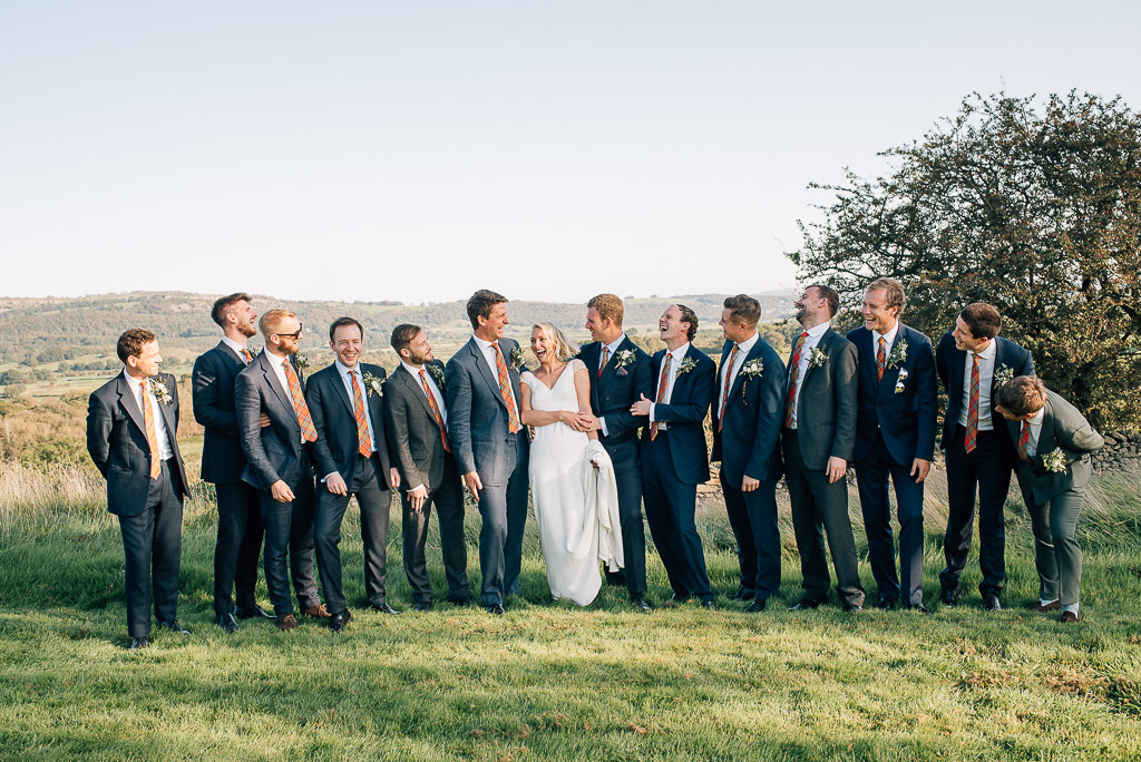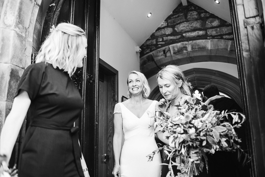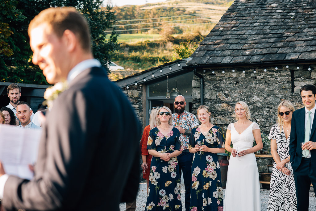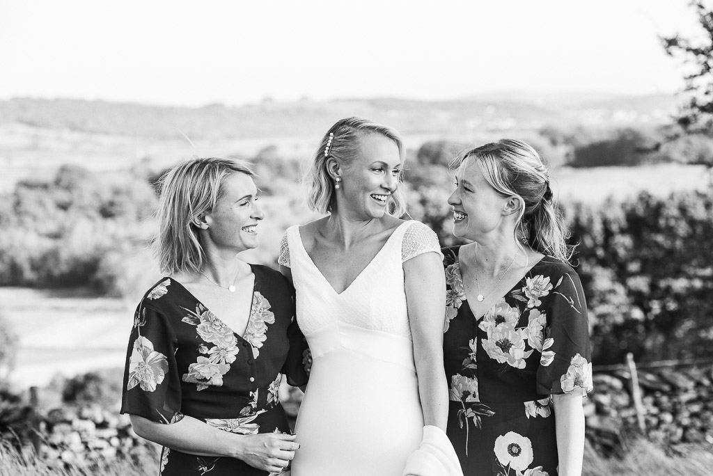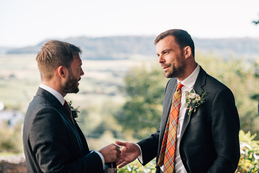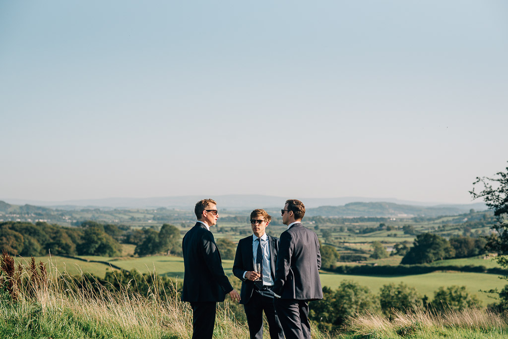 The couple got ready in an inn overlooking Cumbrian hills and there were blue skies from the get-go. Although separated, being on the same site meant I could spend time with both Rowan and Alex in the morning which I always enjoy and also means both sides have their story documented. Rowan and her bridesmaids did their own and each other’s make-up and a friend did Rowan’s hair – it all felt very relaxed. Meanwhile, Alex and his many groomsmen enjoyed lunch and a few pints in the pub garden.