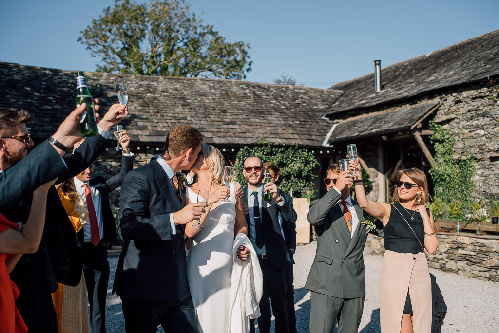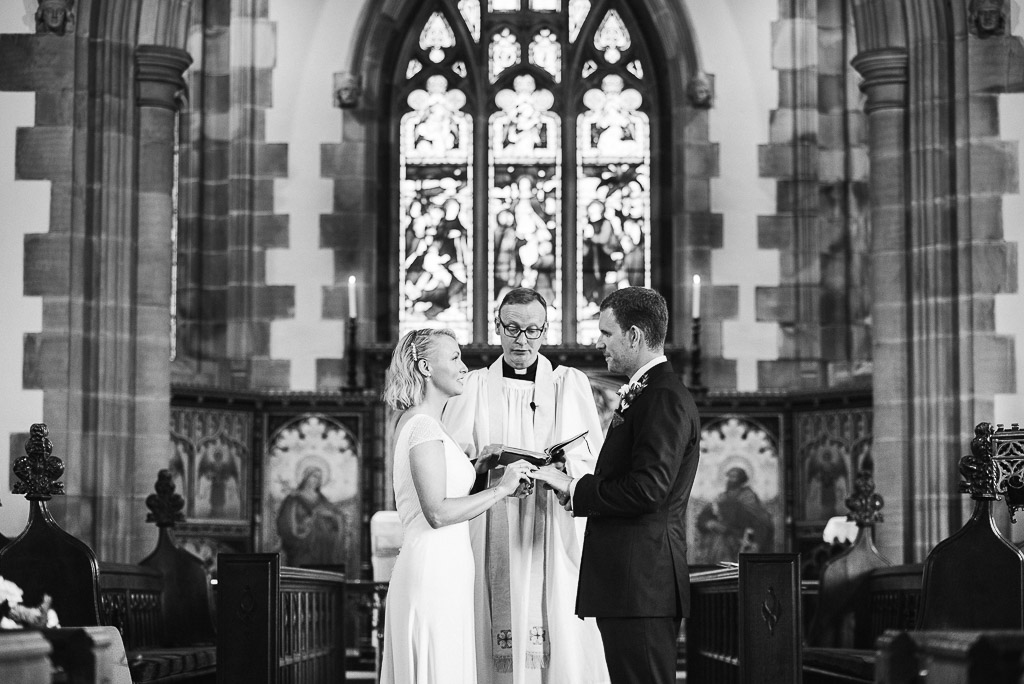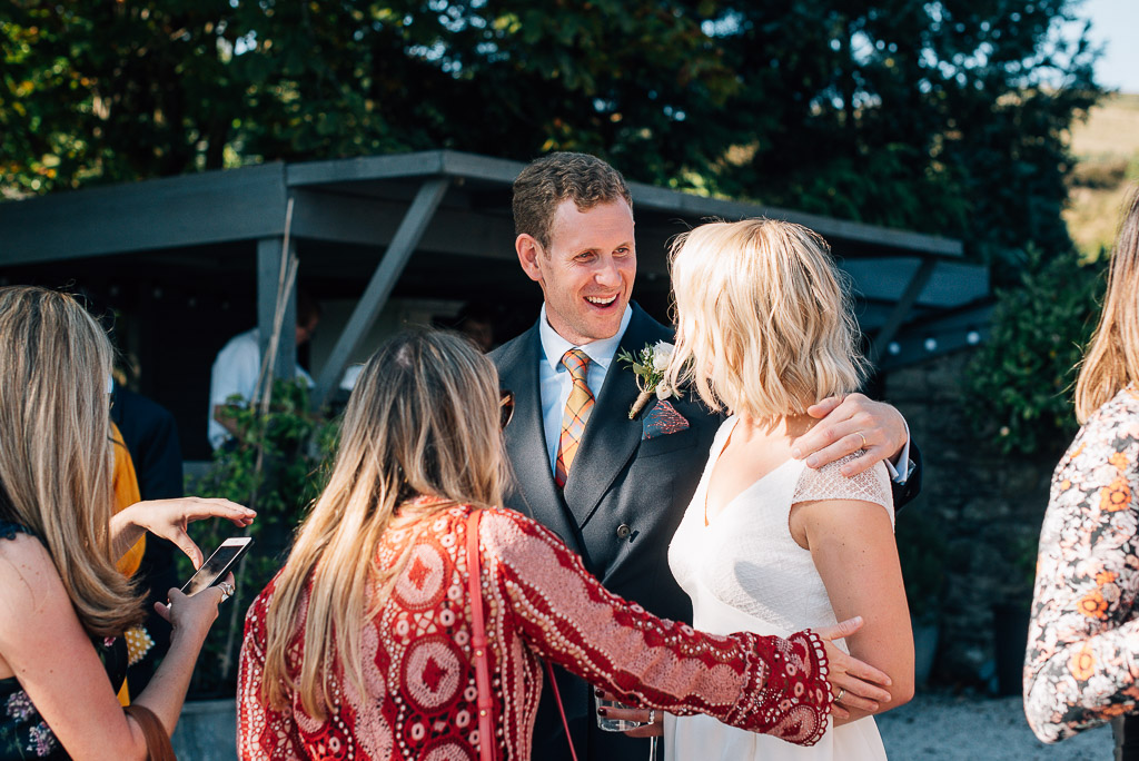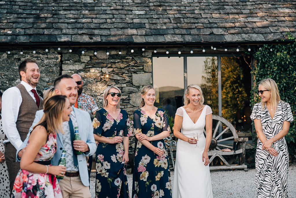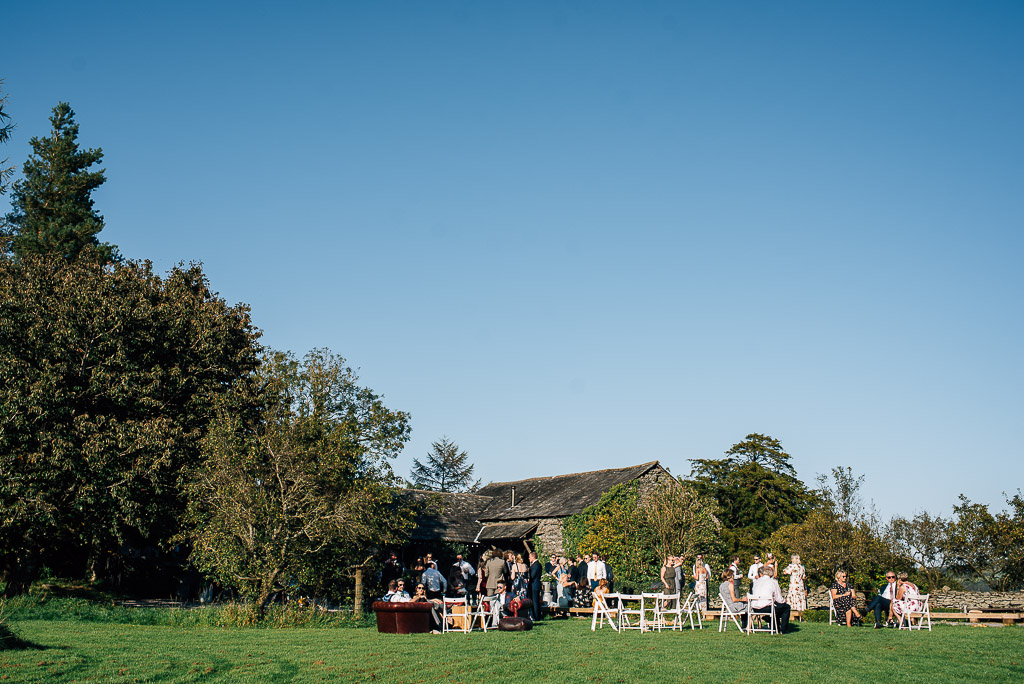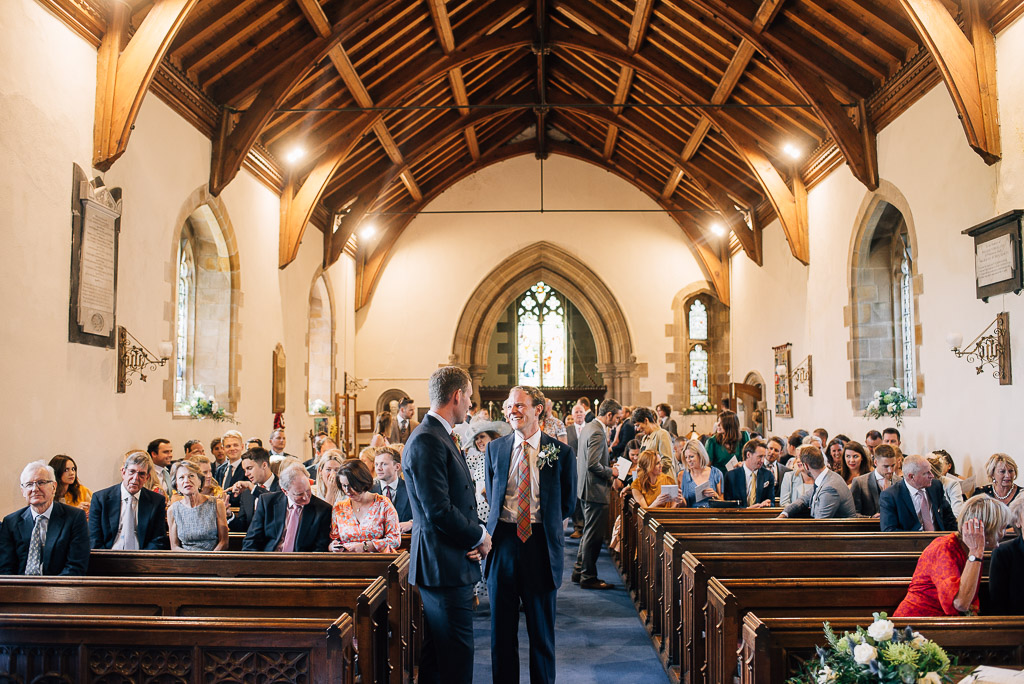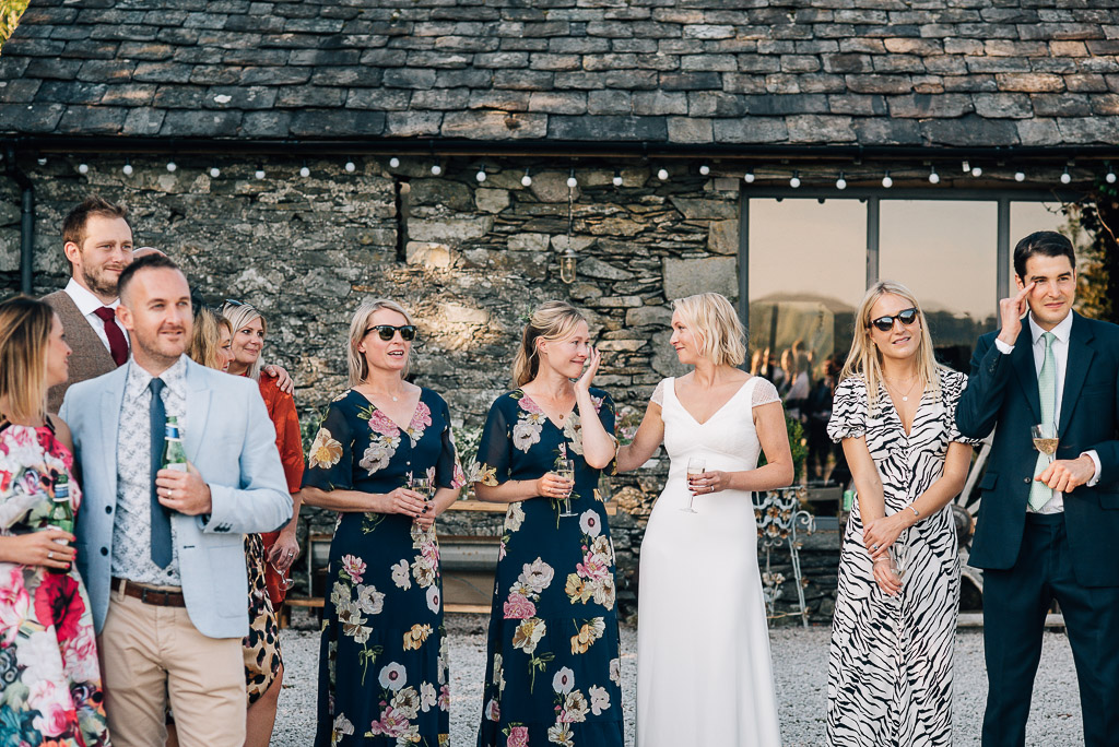 The couple got ready in an inn overlooking Cumbrian hills and there were blue skies from the get-go. Although separated, being on the same site meant I could spend time with both Rowan and Alex in the morning which I always enjoy and also means both sides have their story documented. Rowan and her bridesmaids did their own and each other’s make-up and a friend did Rowan’s hair – it all felt very relaxed. Meanwhile, Alex and his many groomsmen enjoyed lunch and a few pints in the pub garden.