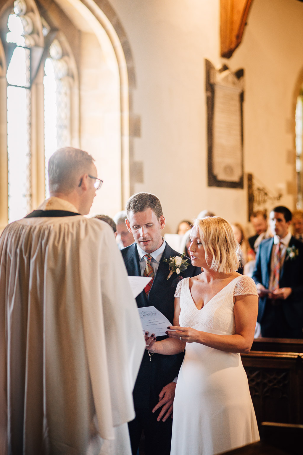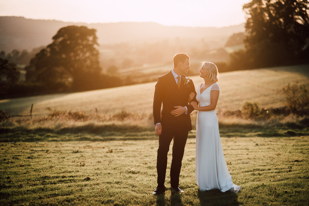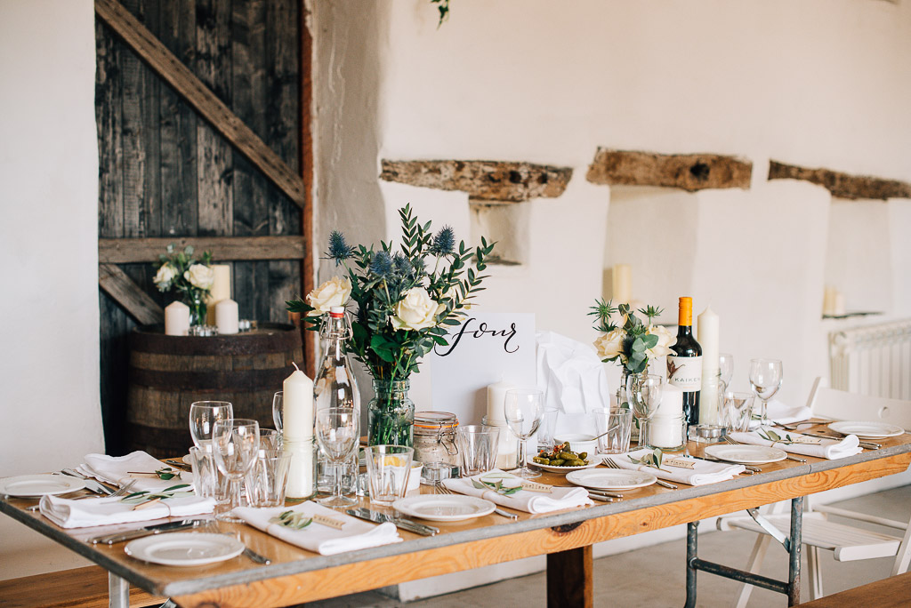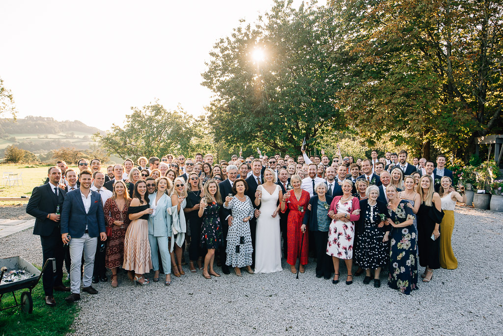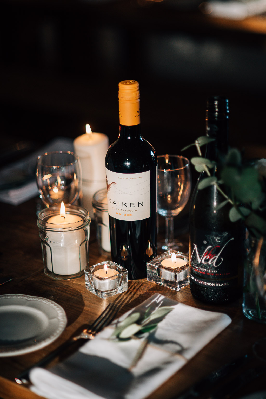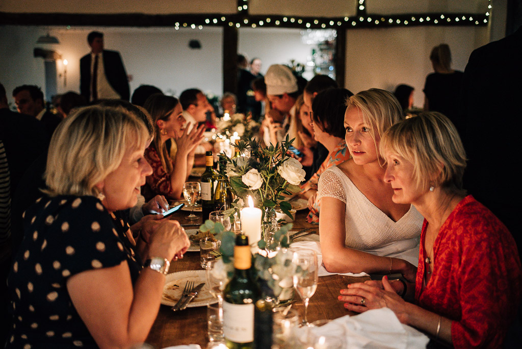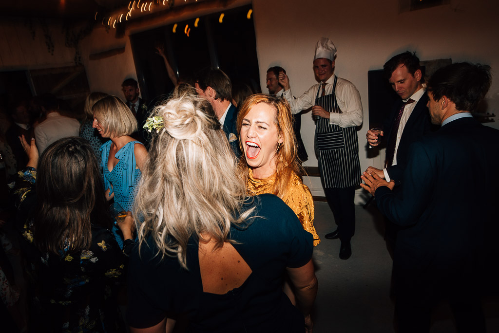 Following the church ceremony, guests ambled a short way along the country road to Paddock Barn; a gorgeous little venue with the most incredible views, decked to perfection with greenery and lots of candles. The tables looked fantastic. On the menu were beef and veggie wellingtons served with lots of roasted veg. The wellingtons were shared in tables of 6 and I loved that each table had one chef’s hat and a great big knife placed on the designated ‘server’s’ place. Who would have this honour had clearly been thought through as I witnessed the zeal with which the hats were worn and knives brandished at the ready!