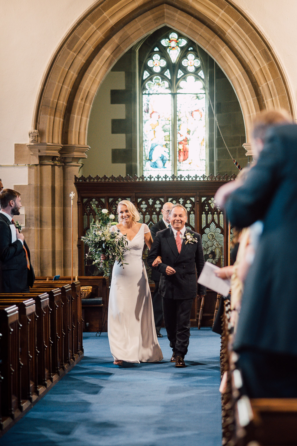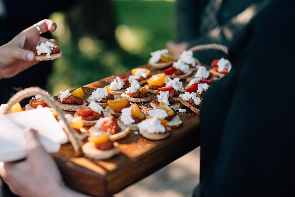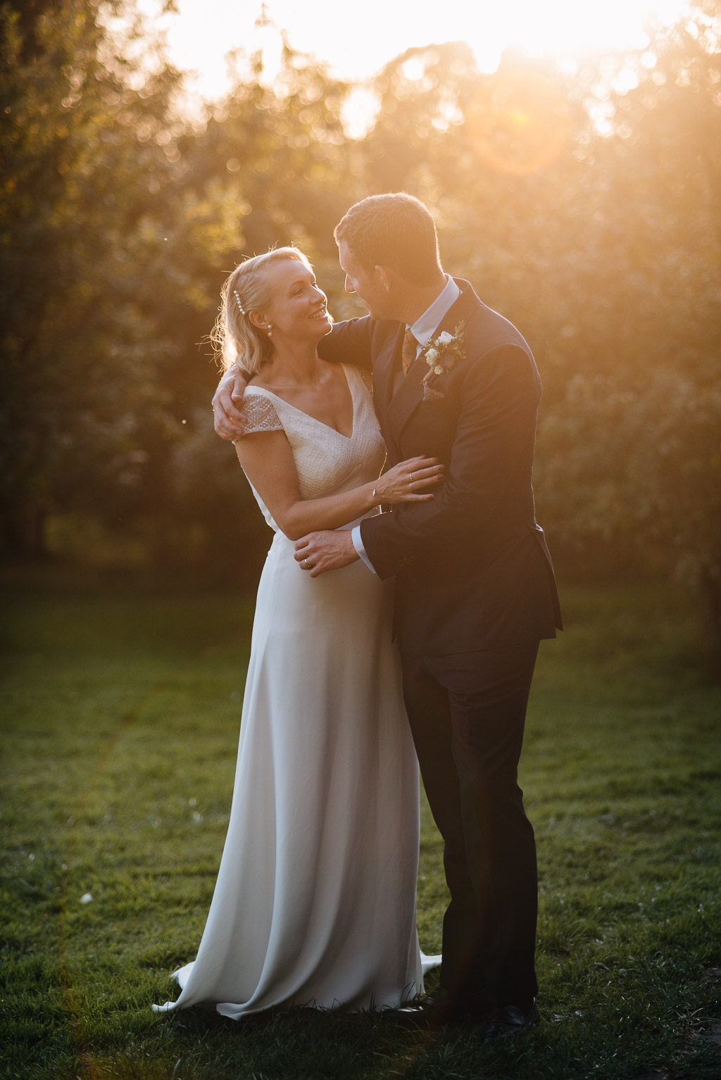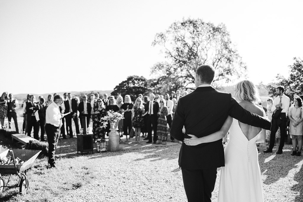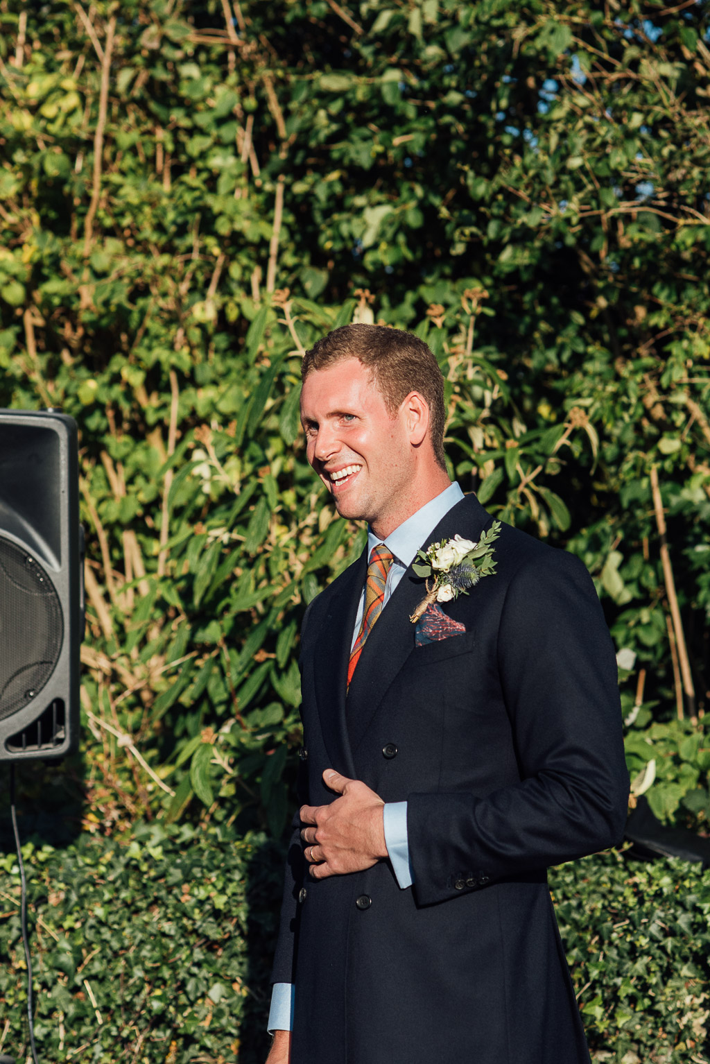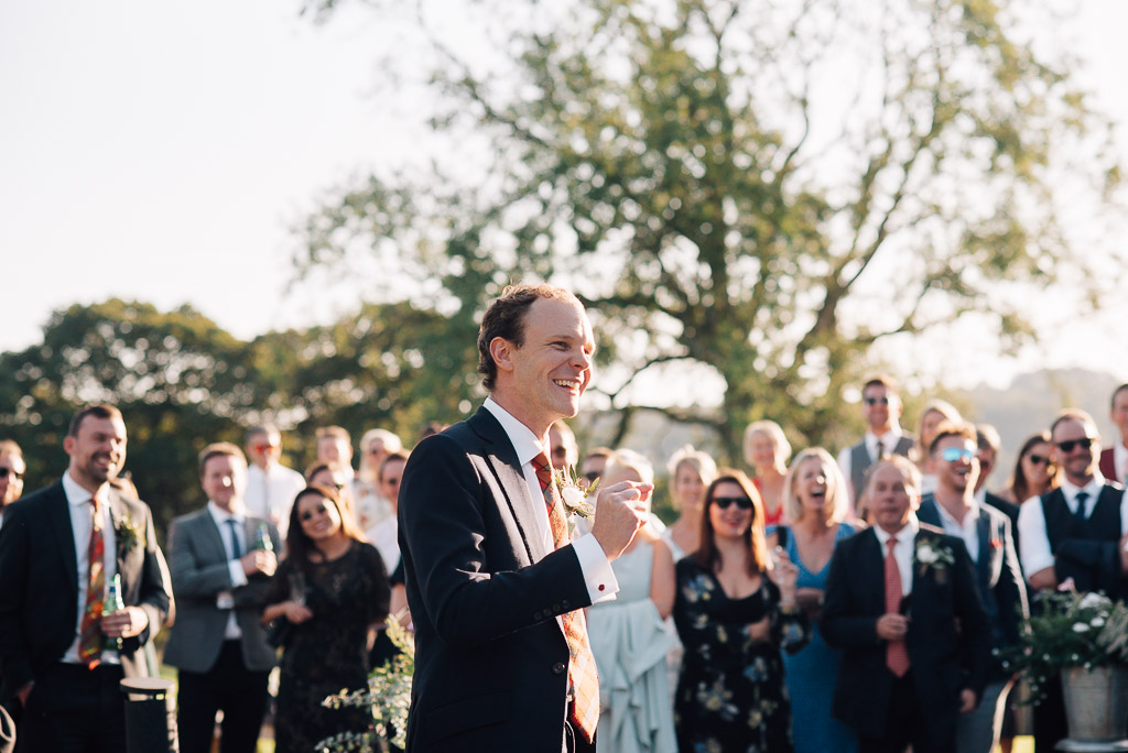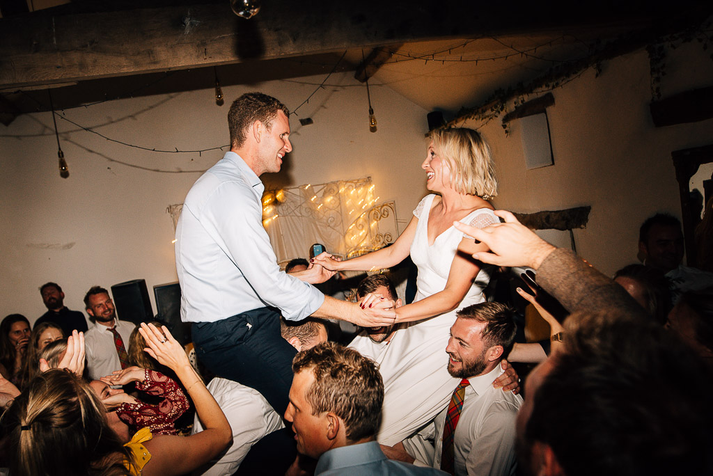 Following the church ceremony, guests ambled a short way along the country road to Paddock Barn; a gorgeous little venue with the most incredible views, decked to perfection with greenery and lots of candles. The tables looked fantastic. On the menu were beef and veggie wellingtons served with lots of roasted veg. The wellingtons were shared in tables of 6 and I loved that each table had one chef’s hat and a great big knife placed on the designated ‘server’s’ place. Who would have this honour had clearly been thought through as I witnessed the zeal with which the hats were worn and knives brandished at the ready!