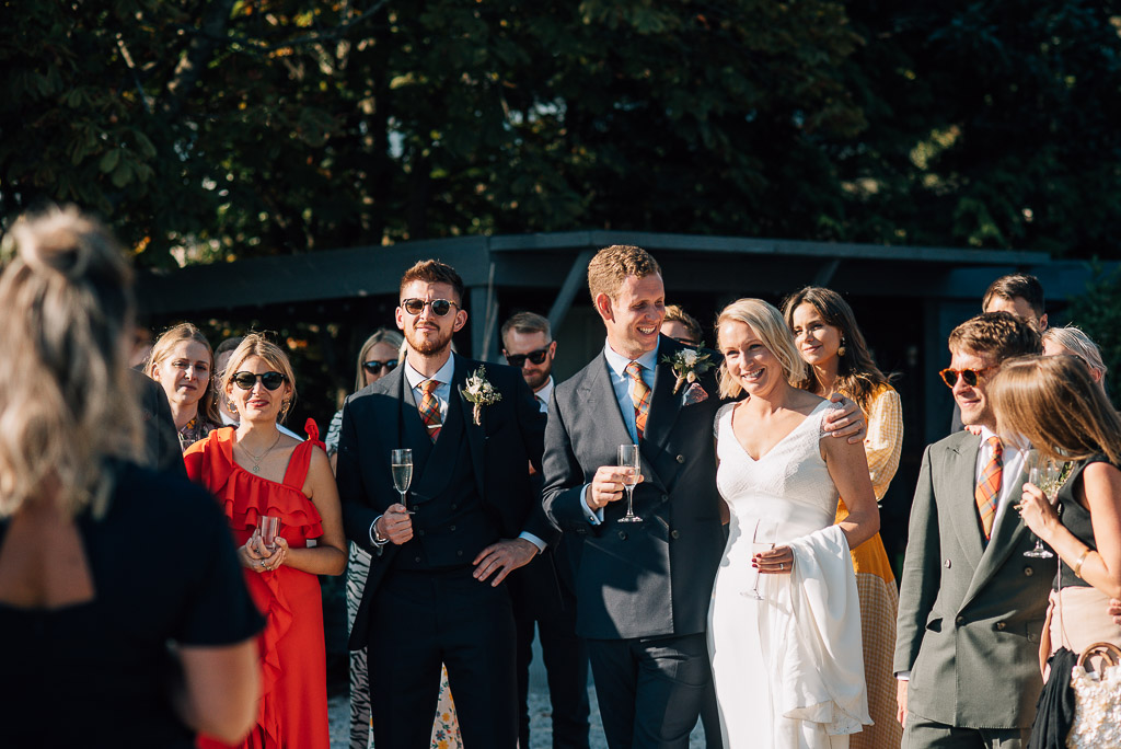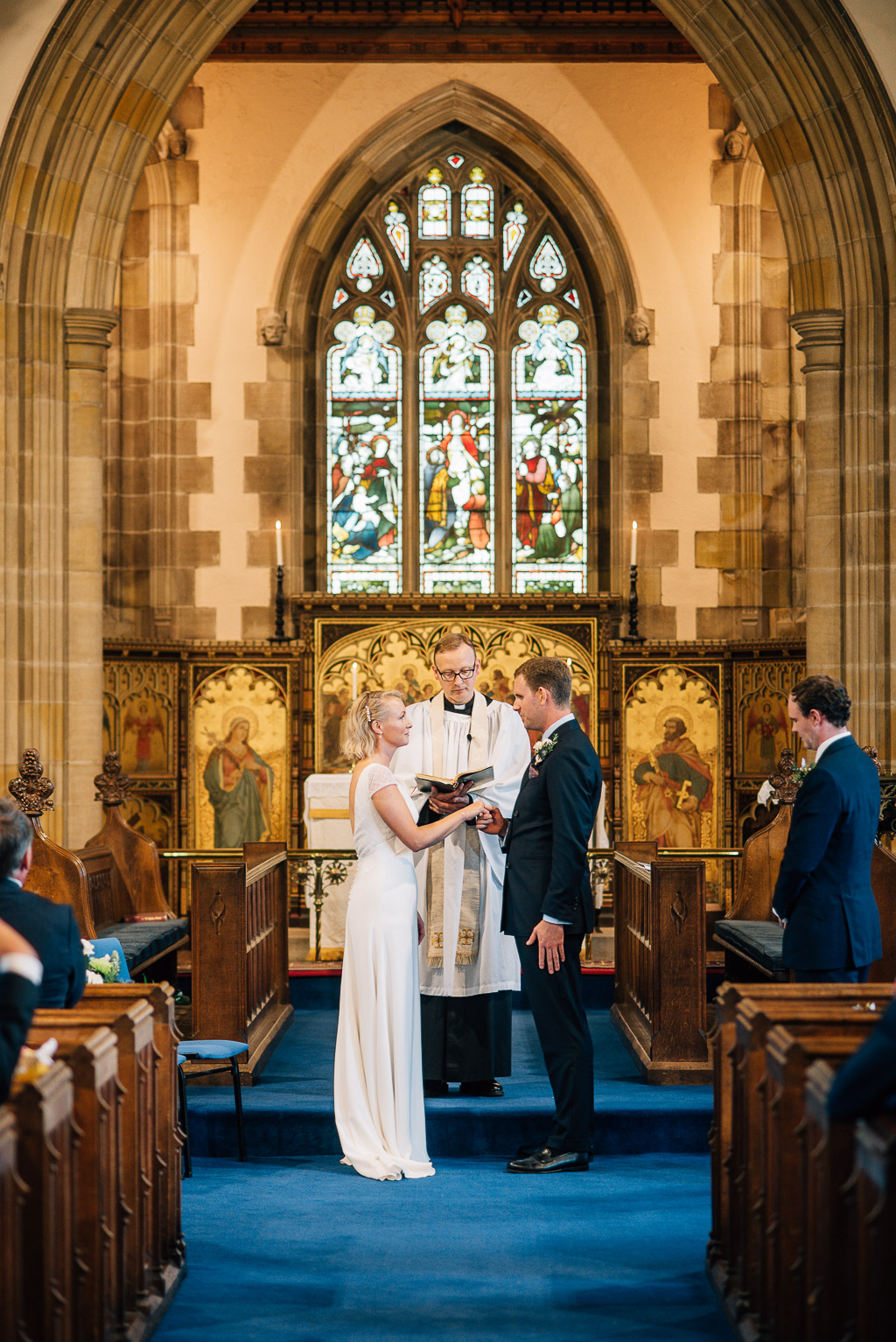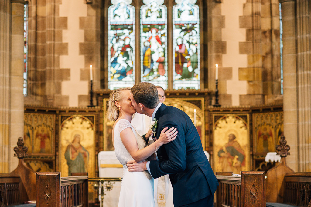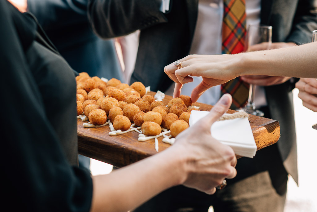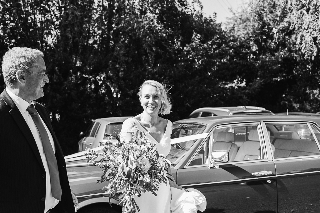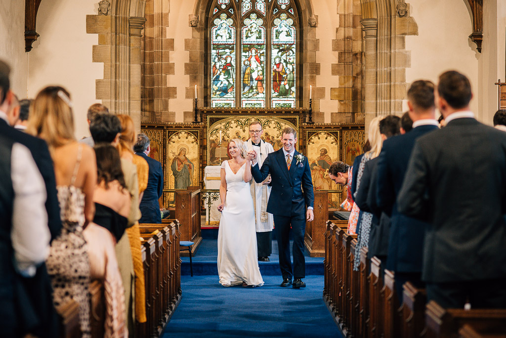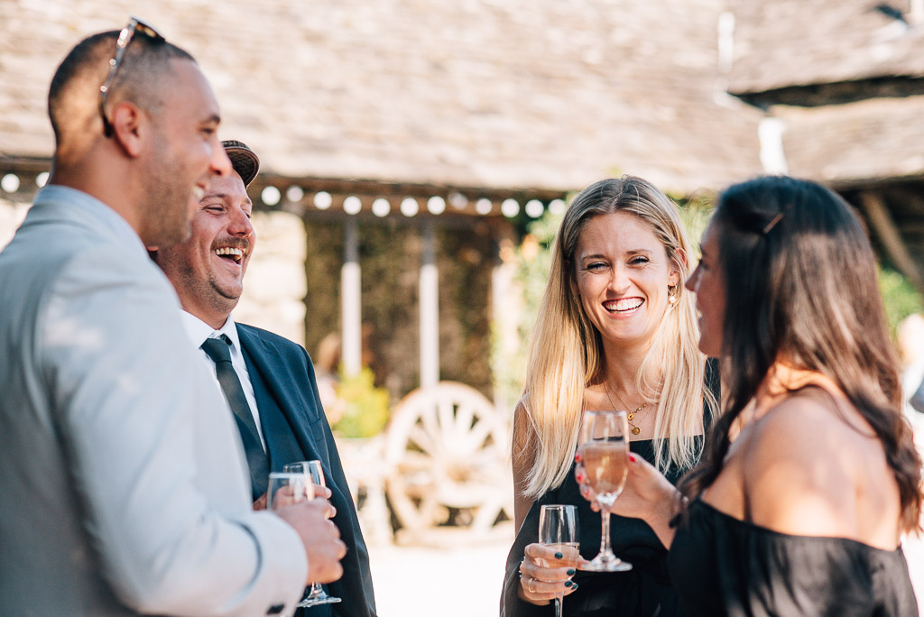 Following the church ceremony, guests ambled a short way along the country road to Paddock Barn; a gorgeous little venue with the most incredible views, decked to perfection with greenery and lots of candles. The tables looked fantastic. On the menu were beef and veggie wellingtons served with lots of roasted veg. The wellingtons were shared in tables of 6 and I loved that each table had one chef’s hat and a great big knife placed on the designated ‘server’s’ place. Who would have this honour had clearly been thought through as I witnessed the zeal with which the hats were worn and knives brandished at the ready!