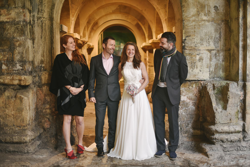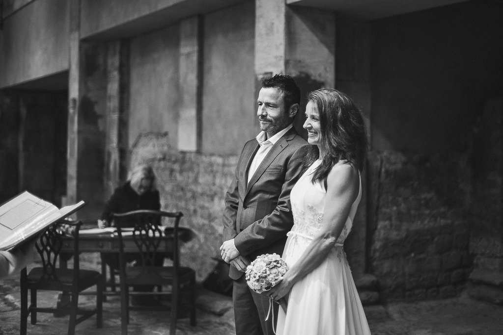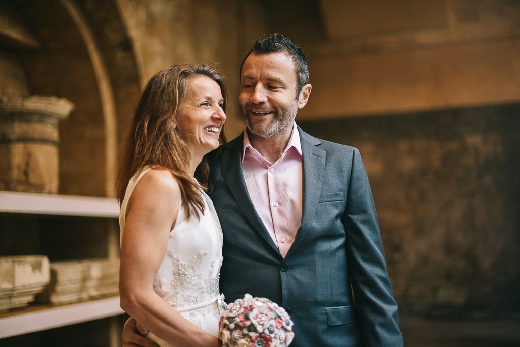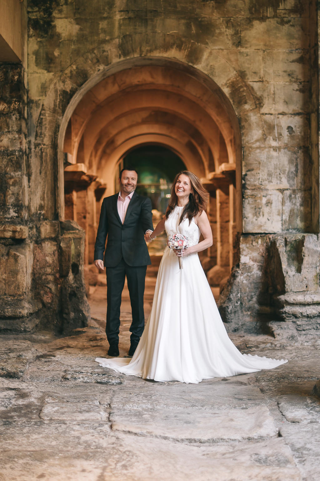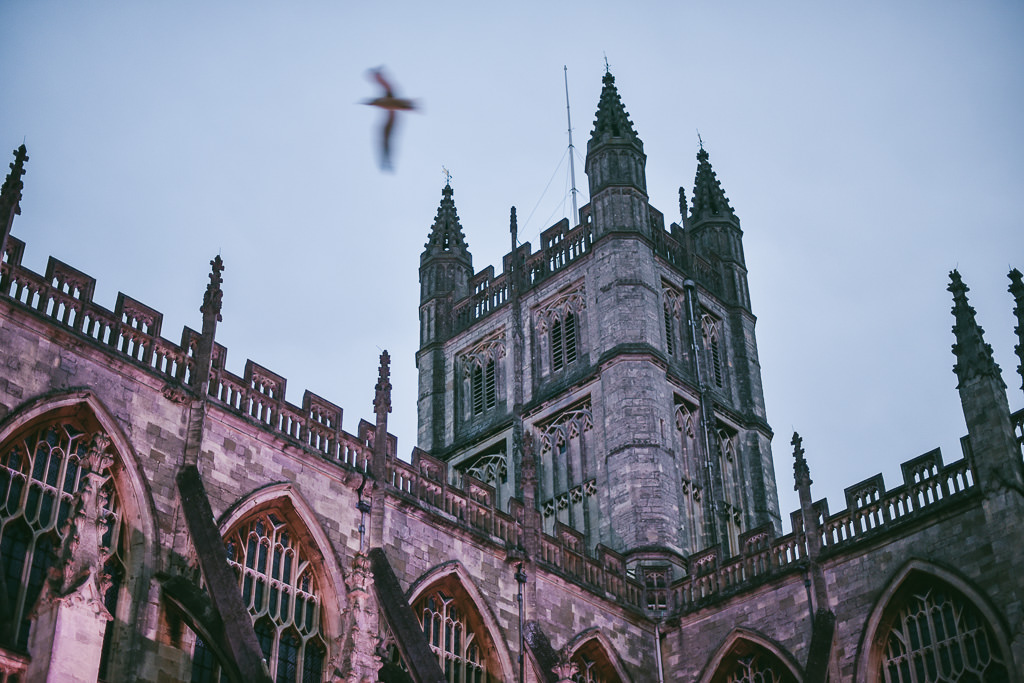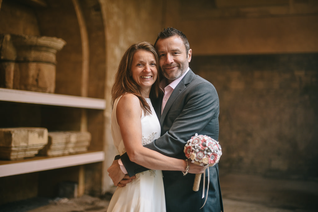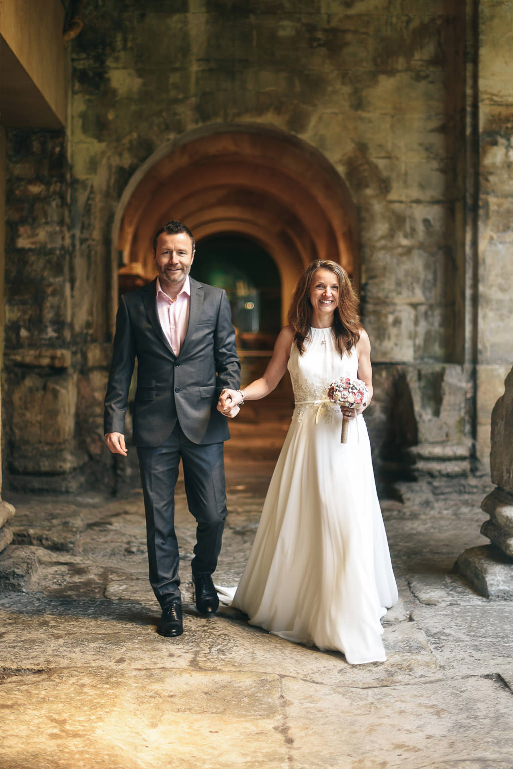 Sarah & David’s wedding was the second wedding I’d photographed, yet 4 years later I still get so many comments on ‘that’ winter Roman Baths wedding and find it crops up in all sorts of places online. The atmosphere was so spectacular and everything you’d hope for a sunrise wedding at the Baths. The cold, crisp December air meant the steam coming off the water was better than ever and added so much drama to the occasion. With the normally busy streets of Bath completely quiet, and their having just two witnesses, Sarah & David’s wedding was set in such a calming and quietly beautiful setting – it felt perfect.