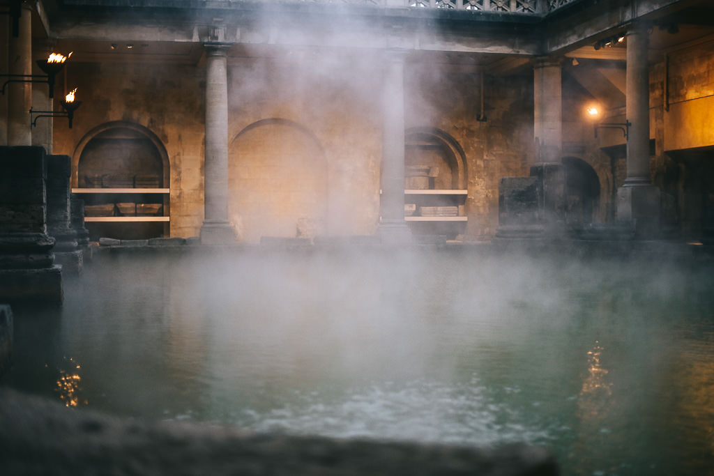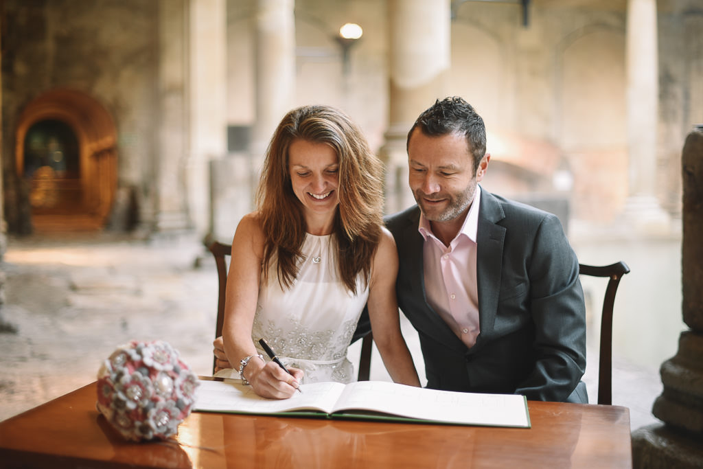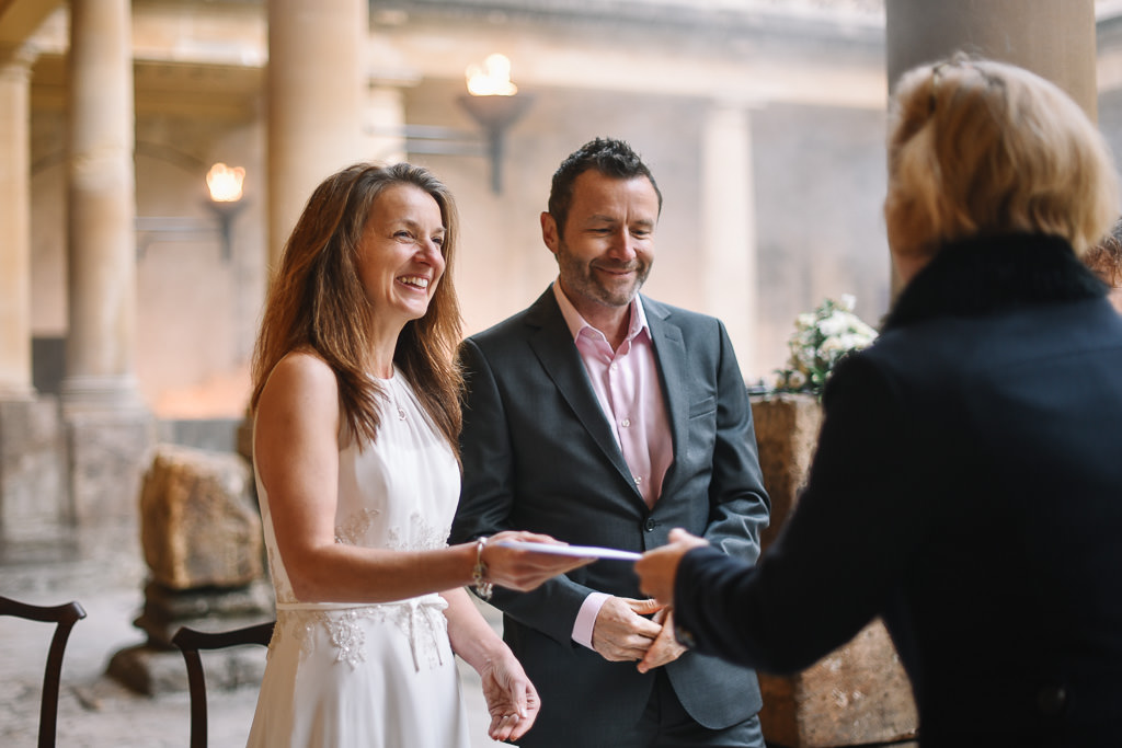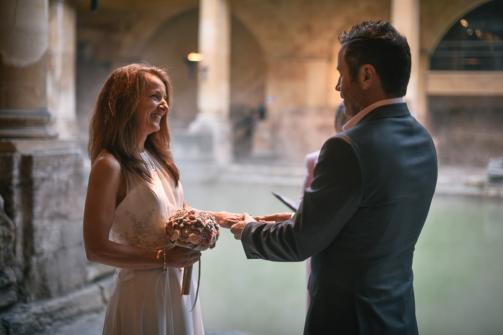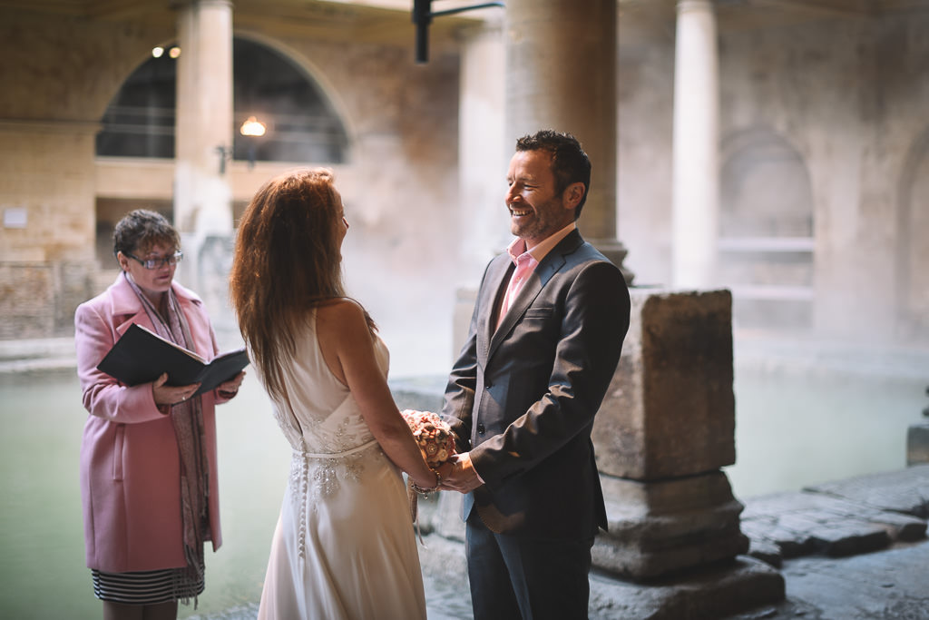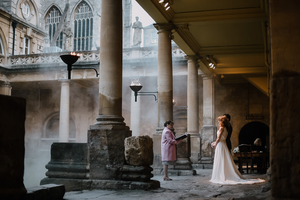 Sarah & David’s Roman Baths intimate sunrise wedding ceremony on a cold December morning in Bath, Somerset.